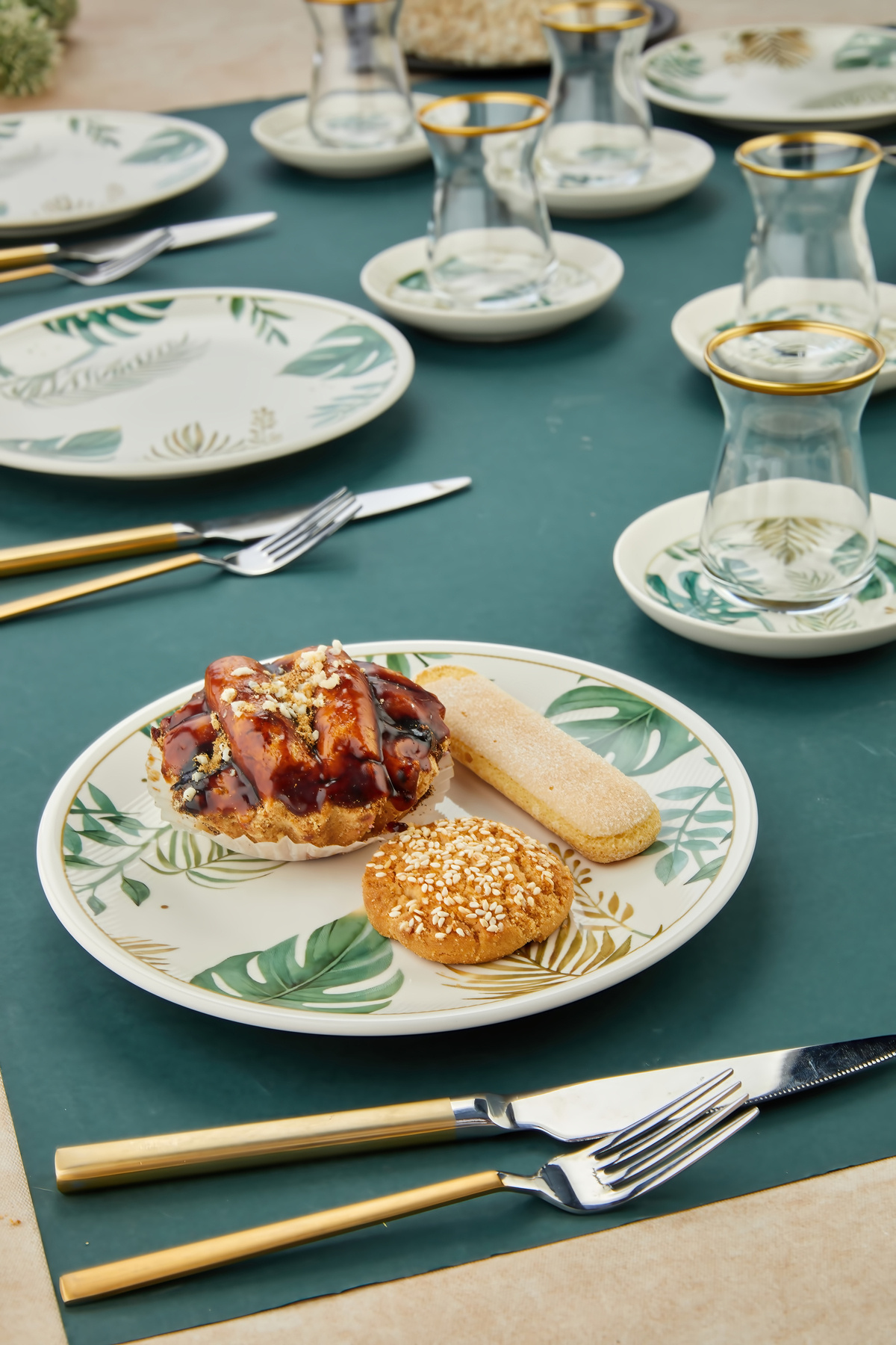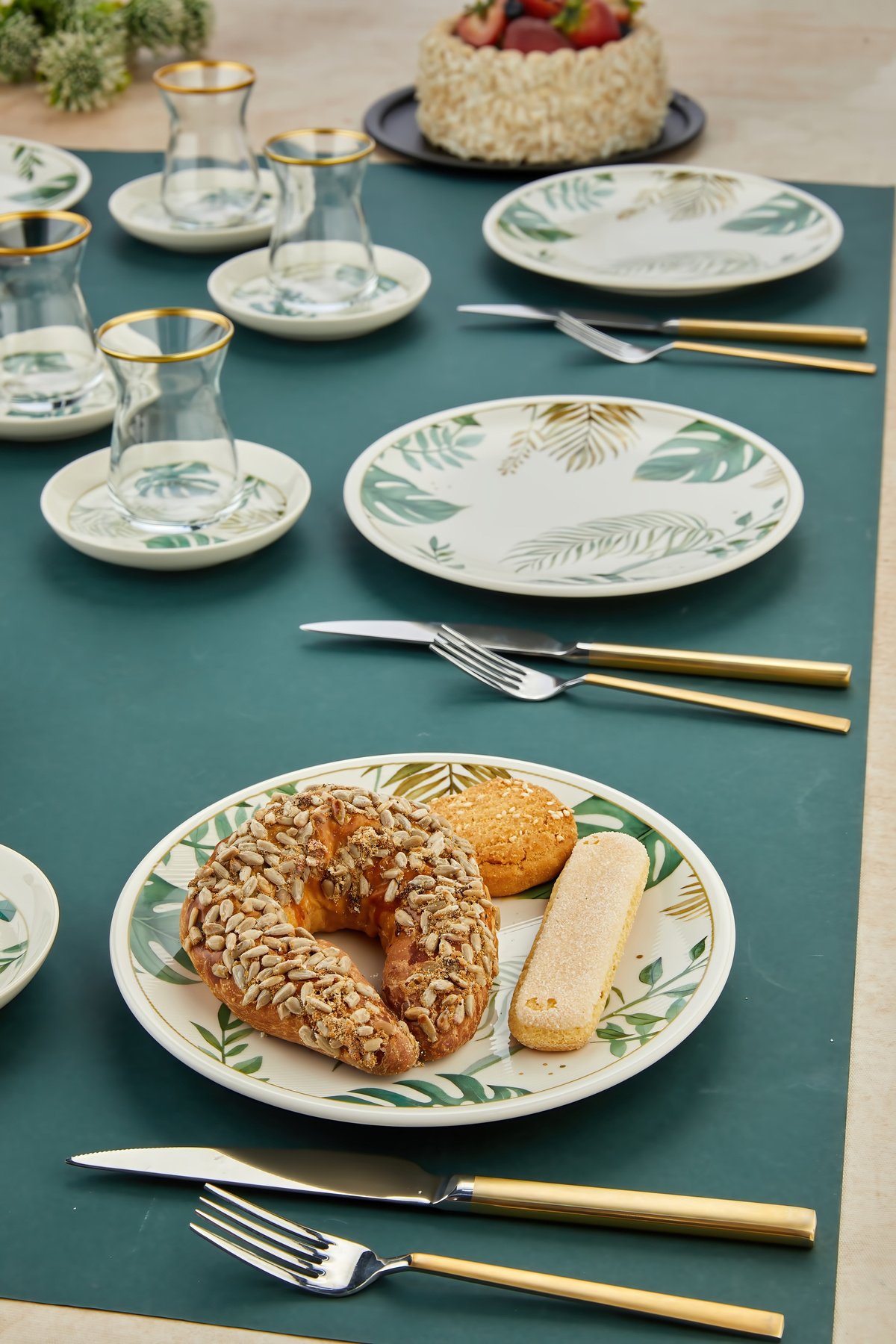 Amazon Serisi Yeşil Yapraklı 18 Parça 6 Kişilik Pasta Seti ve Çay Takımı