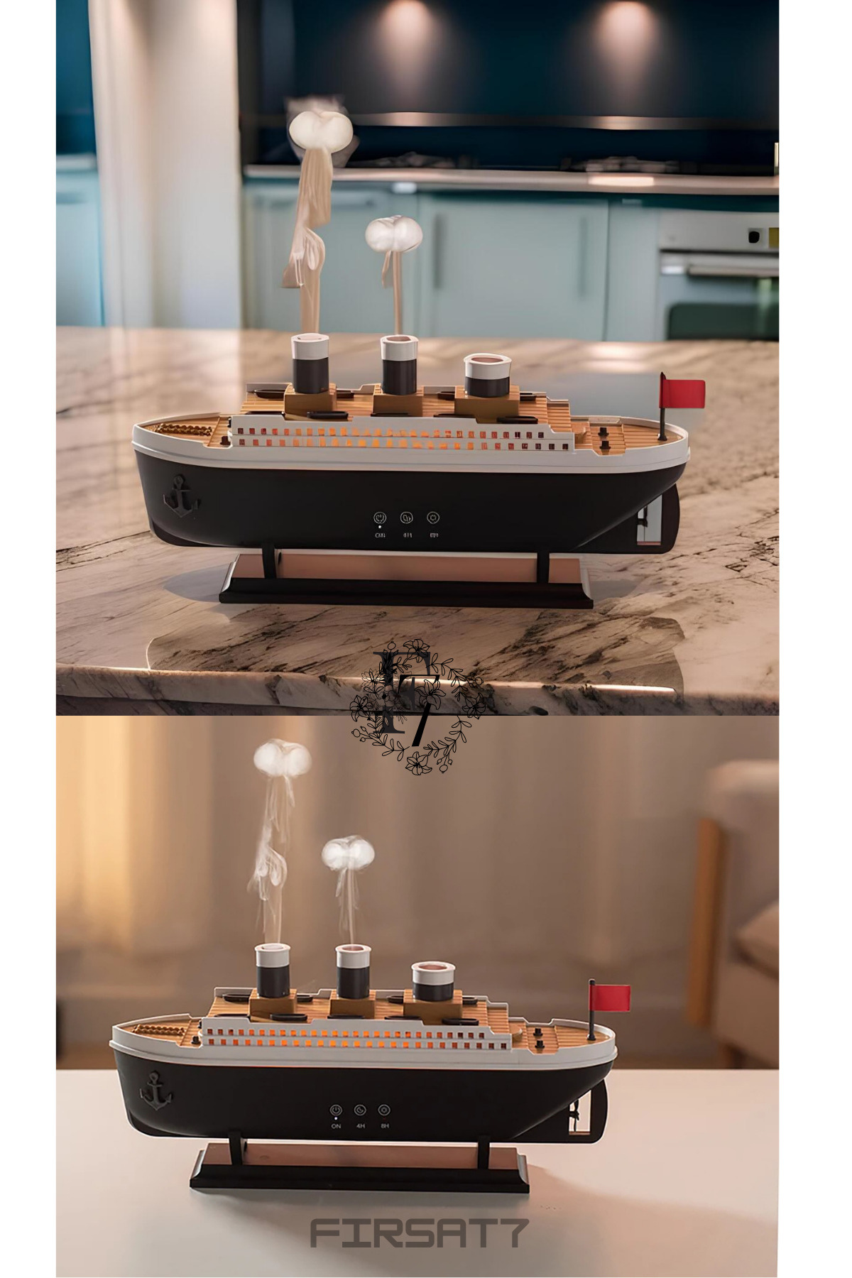 Titanic/Vapur/Gemi Aromaterapi Hava Nemlendirici 7 Led'li Gemi Dekoratif Difüzör Buharlık