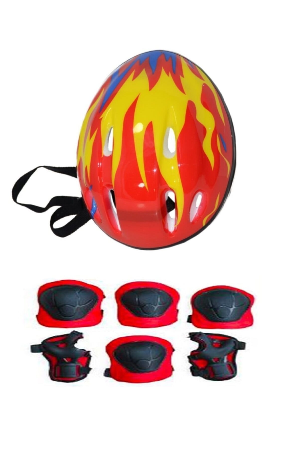 Renkli Hafif Scooter Bisiklet Kaykay Paten Çocuk Kaskı Koruma Seti 6 Parça-kırmızı