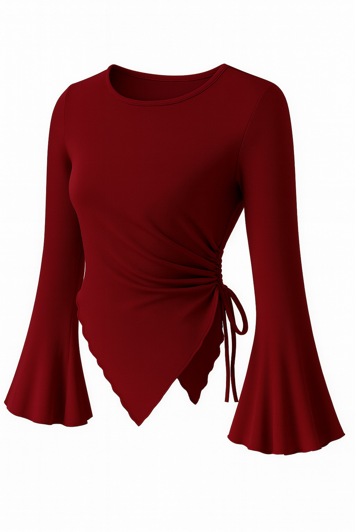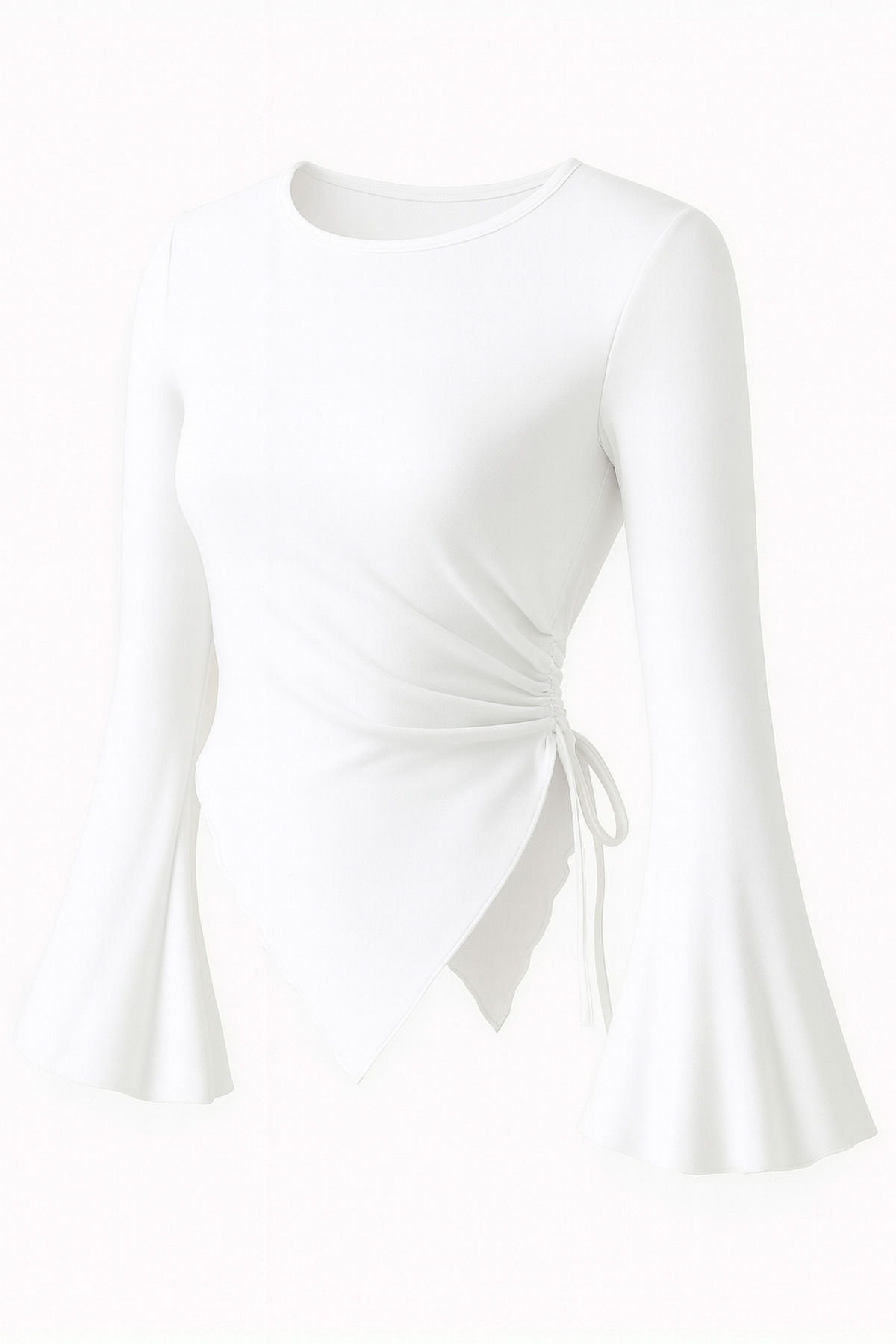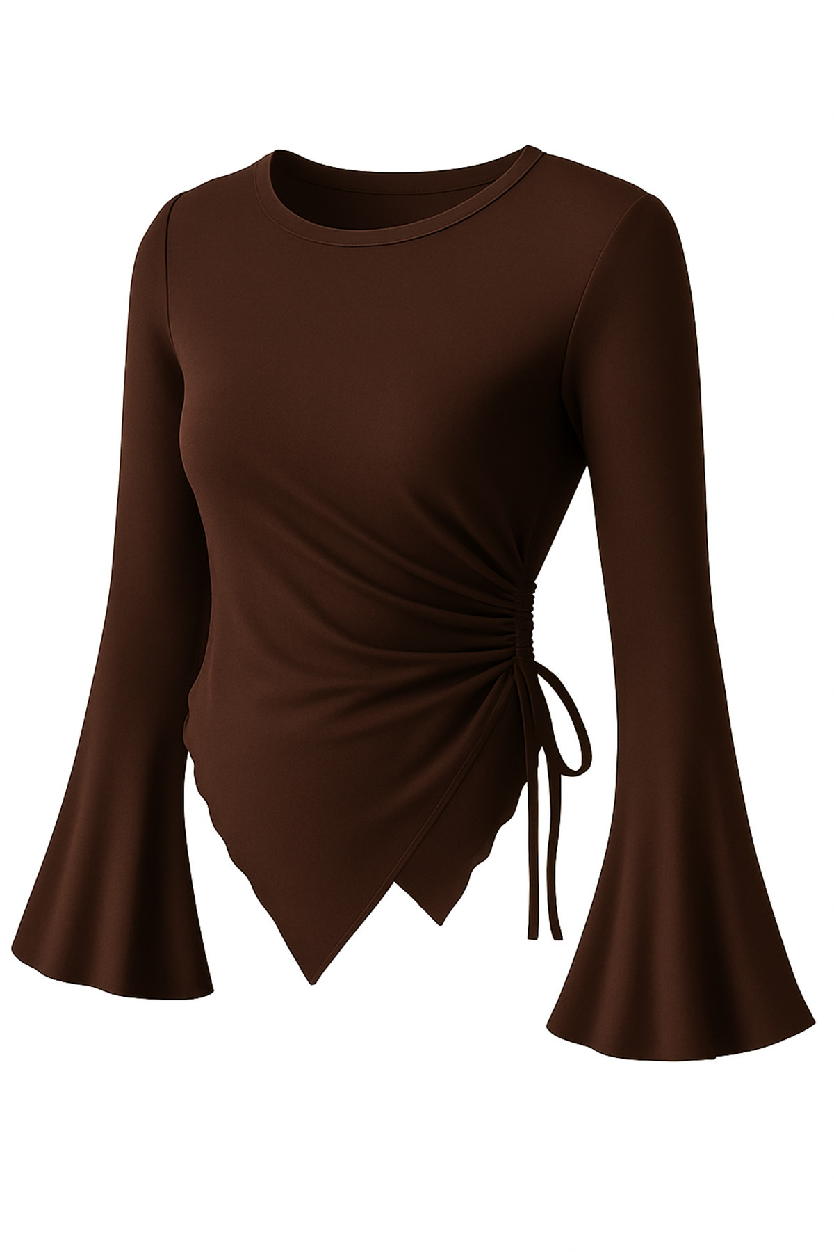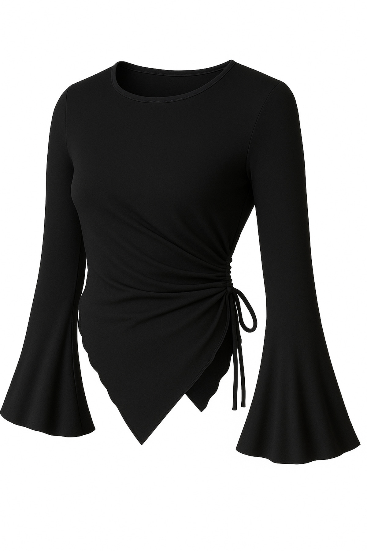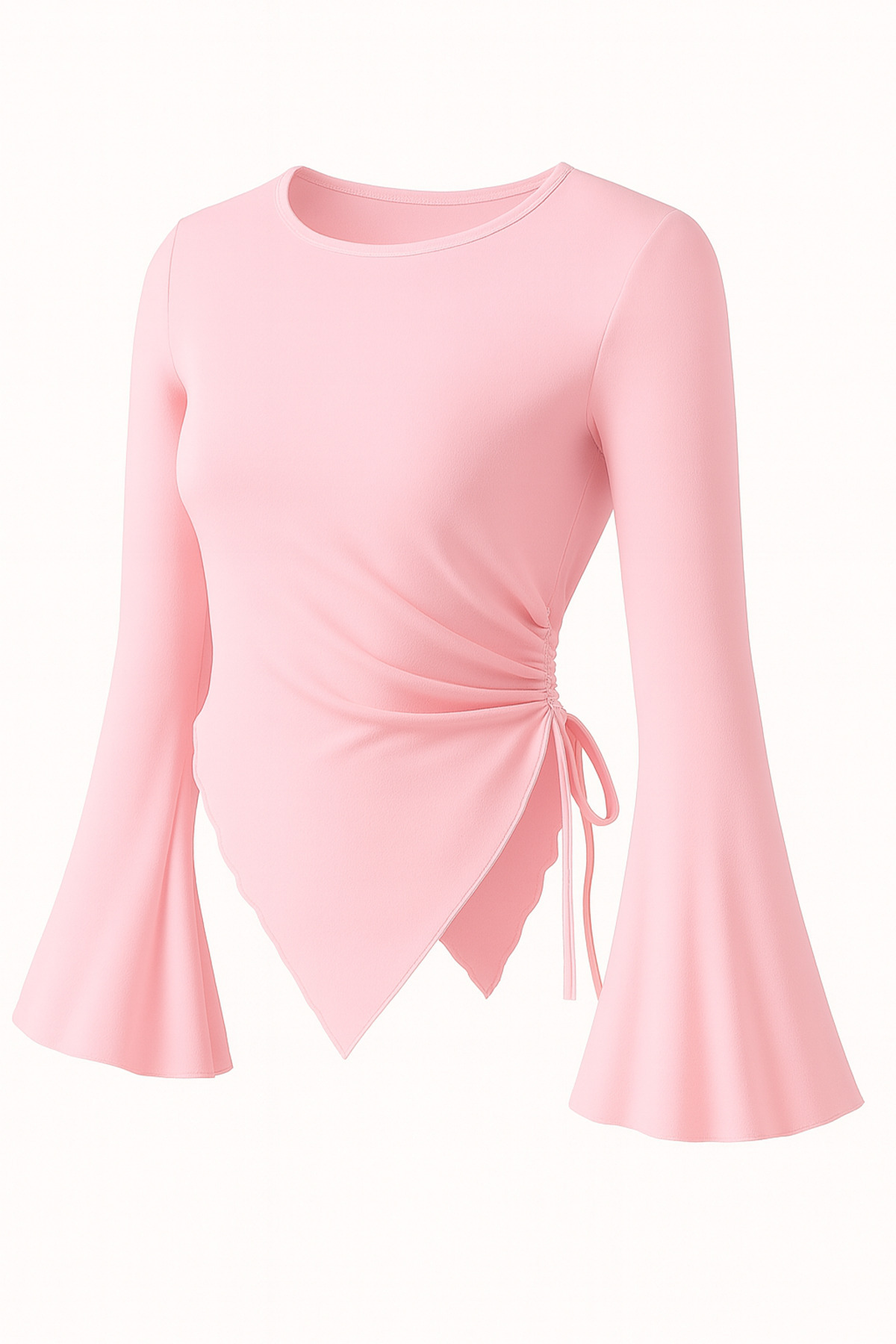 Açık Pembe Yuvarlak yaka Drape Detaylı İspanyol Kol Tesettür Uyumlu Üst Bluz