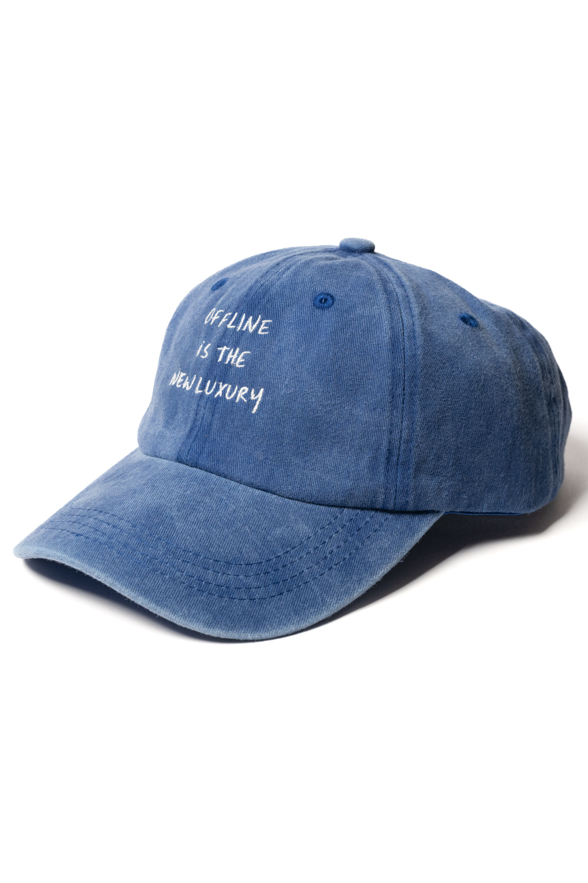 Nakışlı Mavi Şapka Yıkamalı Kumaşlı ve Beyaz Yazı Nakışlı Şapka Pamuklu Ayarlı