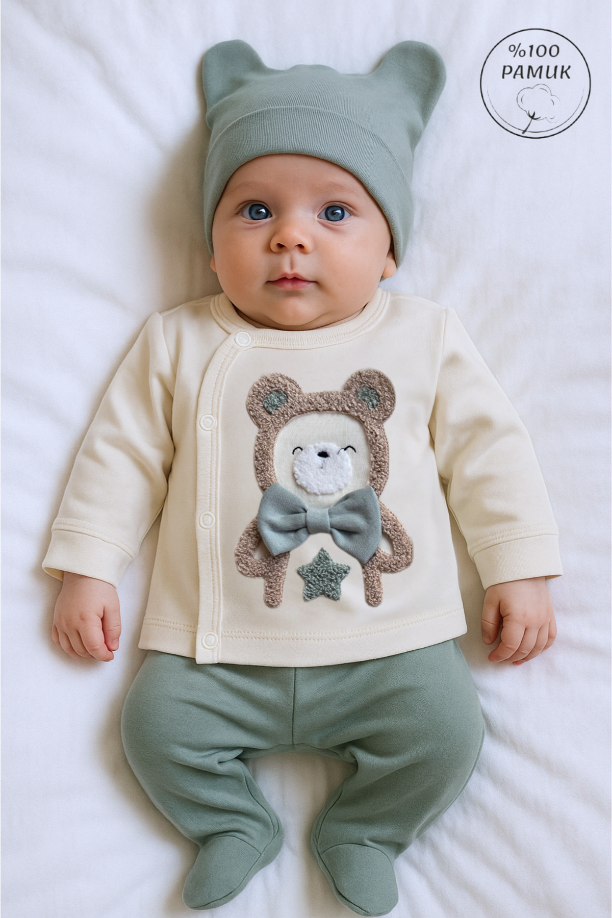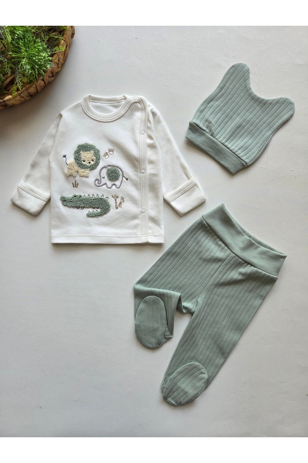 %100 Pamuklu 0-3 Ay Yenidoğan Bebek Hastane Çıkışı 3lü Set