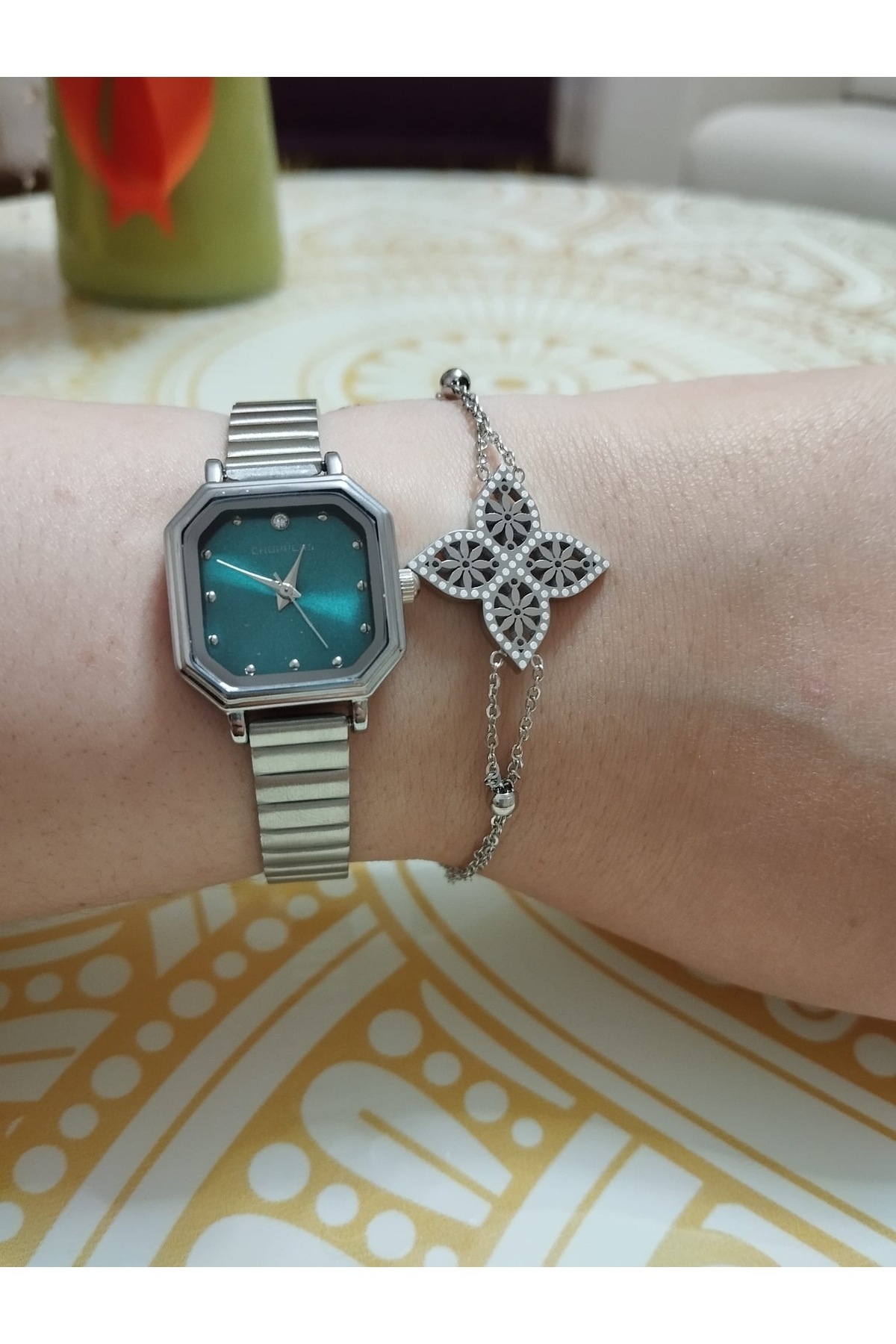Modern zarafeti ve göz alıcı detayları bir arada sunan bu özel kol saati ve yonca motifli bileklik kombini ile stilinize sofistike bir dokunuş katın! Hem günlük kullanımda hem de özel davetlerde tüm dikkatleri üzerinize çekecek, benzersiz bir set.
