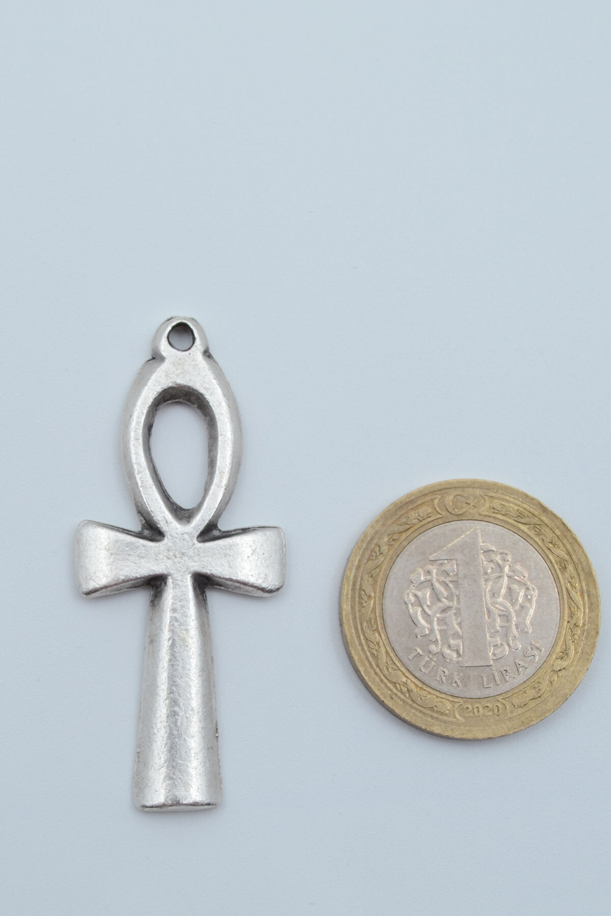 Zamak malzemeden üretilen bu Nil'in Anahtarı - Ankh Anahtarı Kolye Ucu, Antik Gümüş Kaplamasıyla şıklık ve dayanıklılık sunar.5 cm x 2,1 cm boyutları ve 5,33 gram ağırlığıyla koleksiyonlar için özel bir parça olan tasarım, 60 cm uzunluğunda İthal Silver Renk Düz Ezme Zincir ile birlikte gelmektedir.