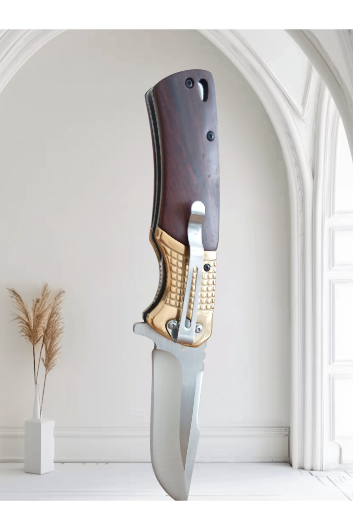 paslanmaz çelikten üretilmiştir paduk pirinç kabze şık tasarım orjinal üründür yarı otomatik kemer klipsli rulmanli içten kilitli cep çakısı Tam boy 21.5 cm namlu boyu 9 cm