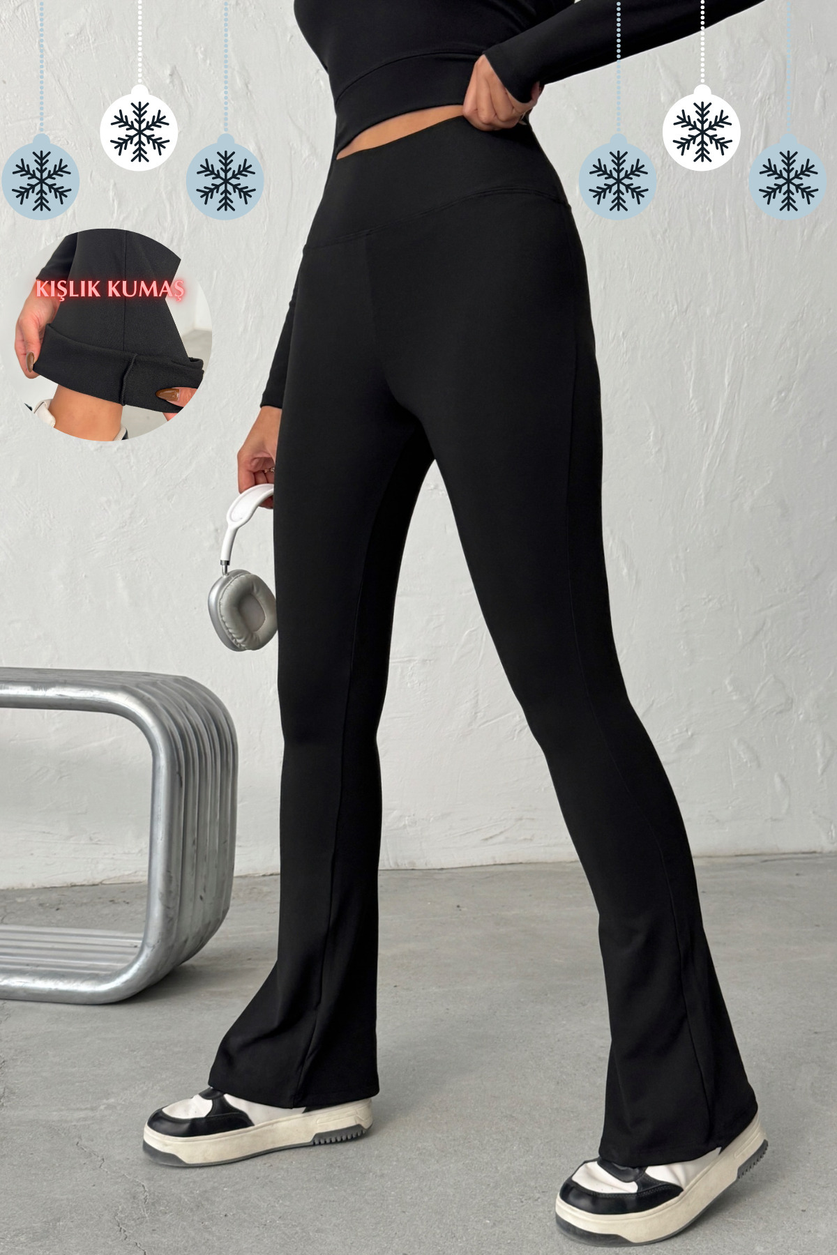 Kışlık İçi Polarlı Yüksek Bel Toparlayıcı Ispanyol Paça Flare Kadın Tayt Pantolon