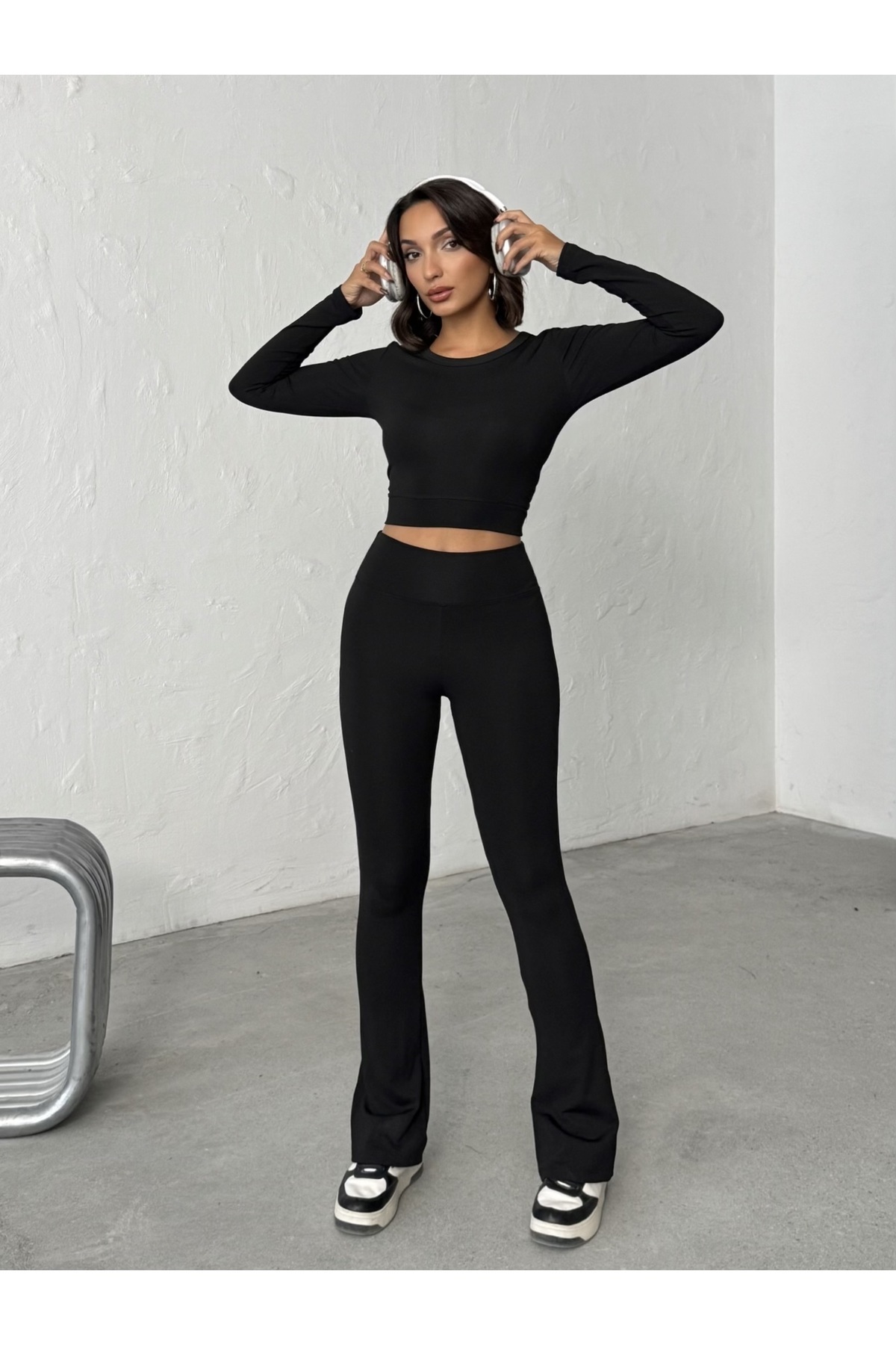 Kışlık İçi Polarlı Yüksek Bel Toparlayıcı Ispanyol Paça Flare Kadın Tayt Pantolon