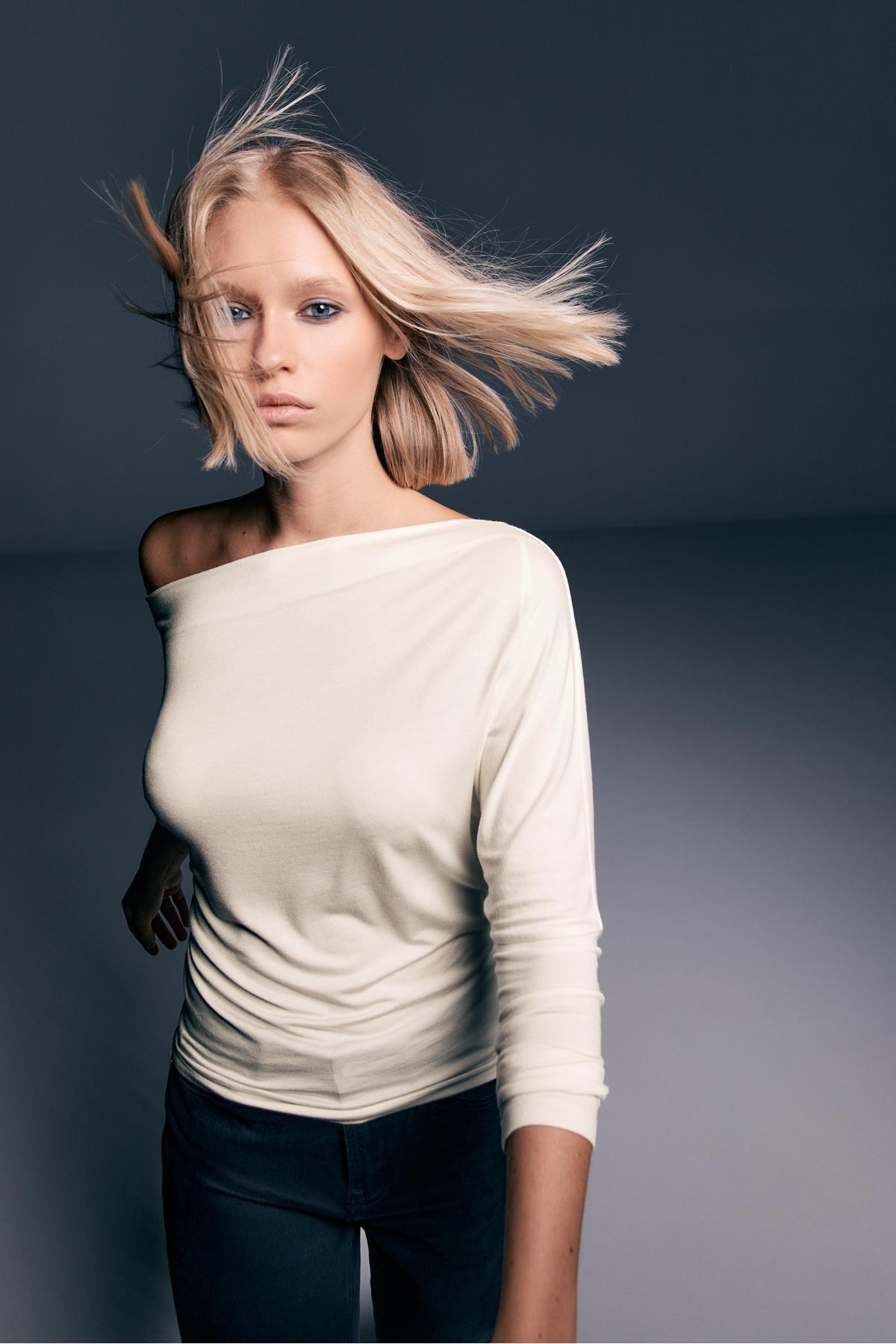 Son derece yumuşak bir dokunuş sağlayan modal karışımlı esnek kumaştan üretilmiş, dökümlü tişört.