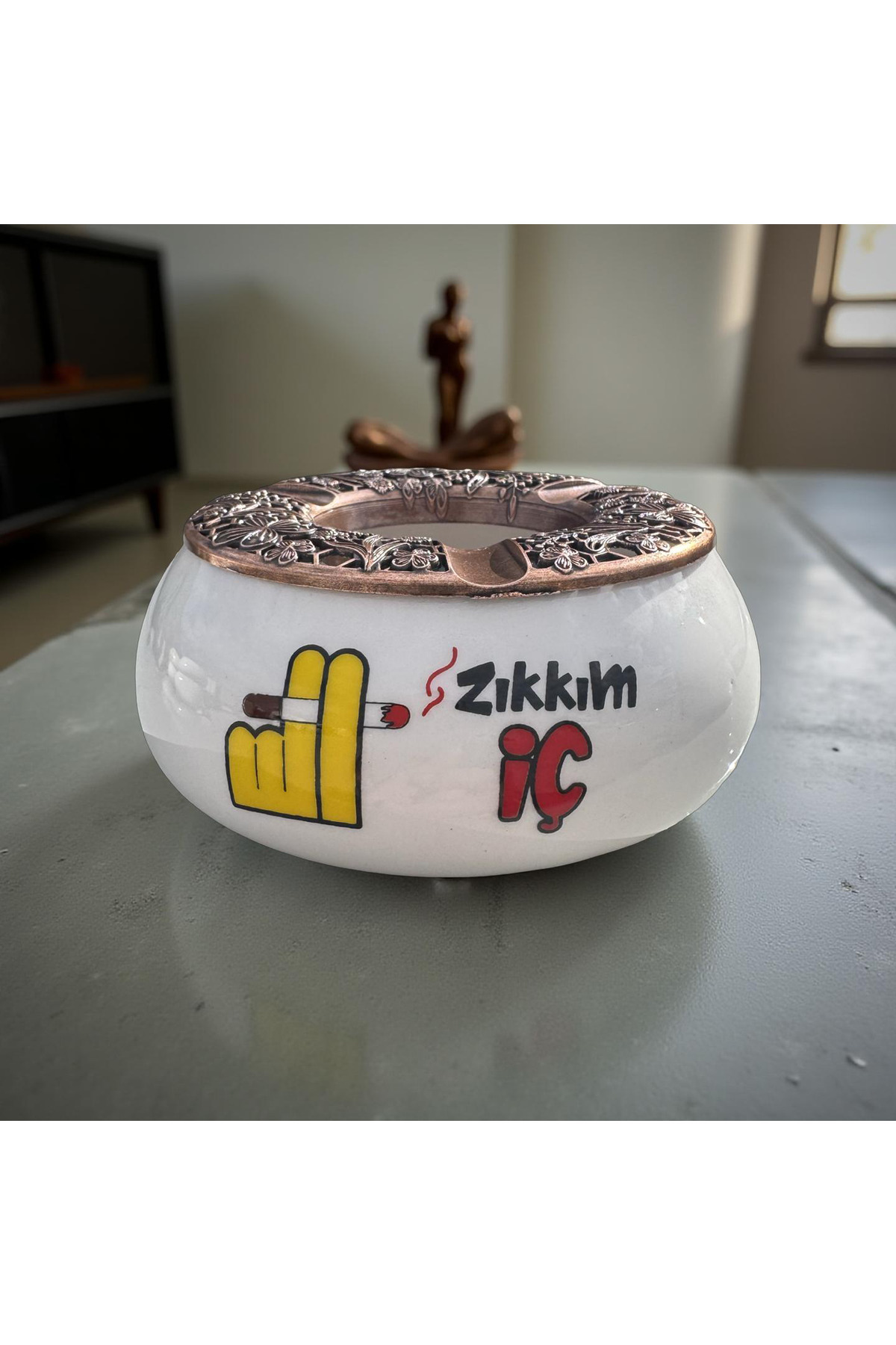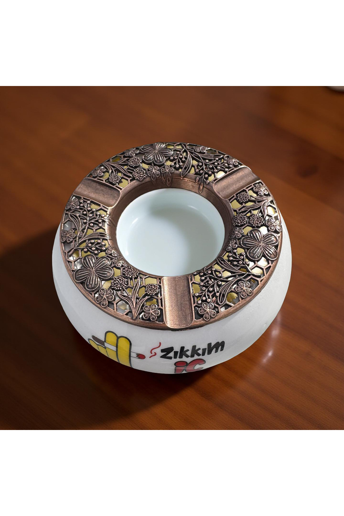 Bir adet baskılı küllük bir adet metal kapak toplam iki parça ürün gönderilecektir