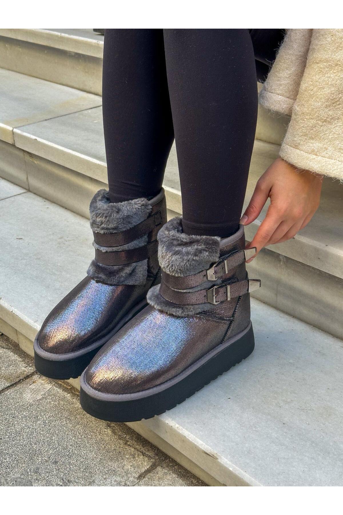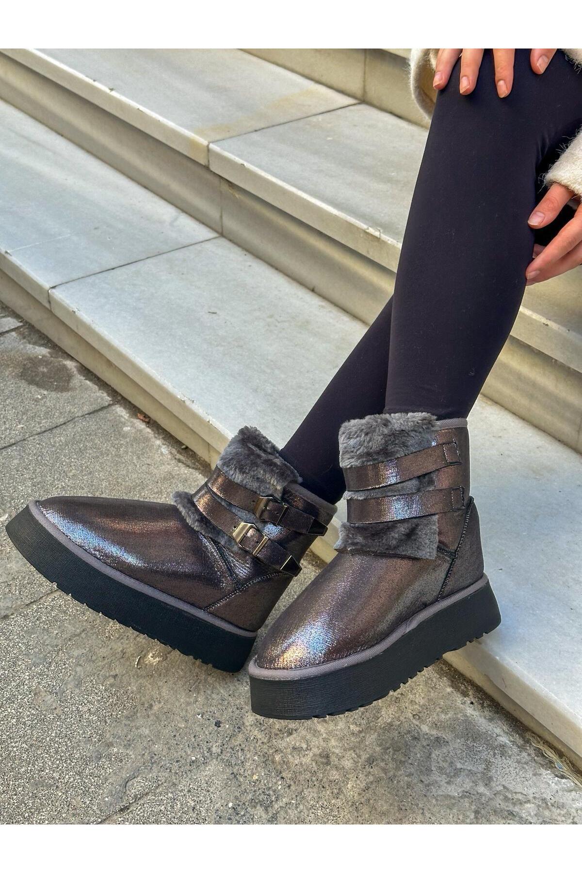 Gri (Snoi) Kürklü Toka Detay Kadın Kar Botu