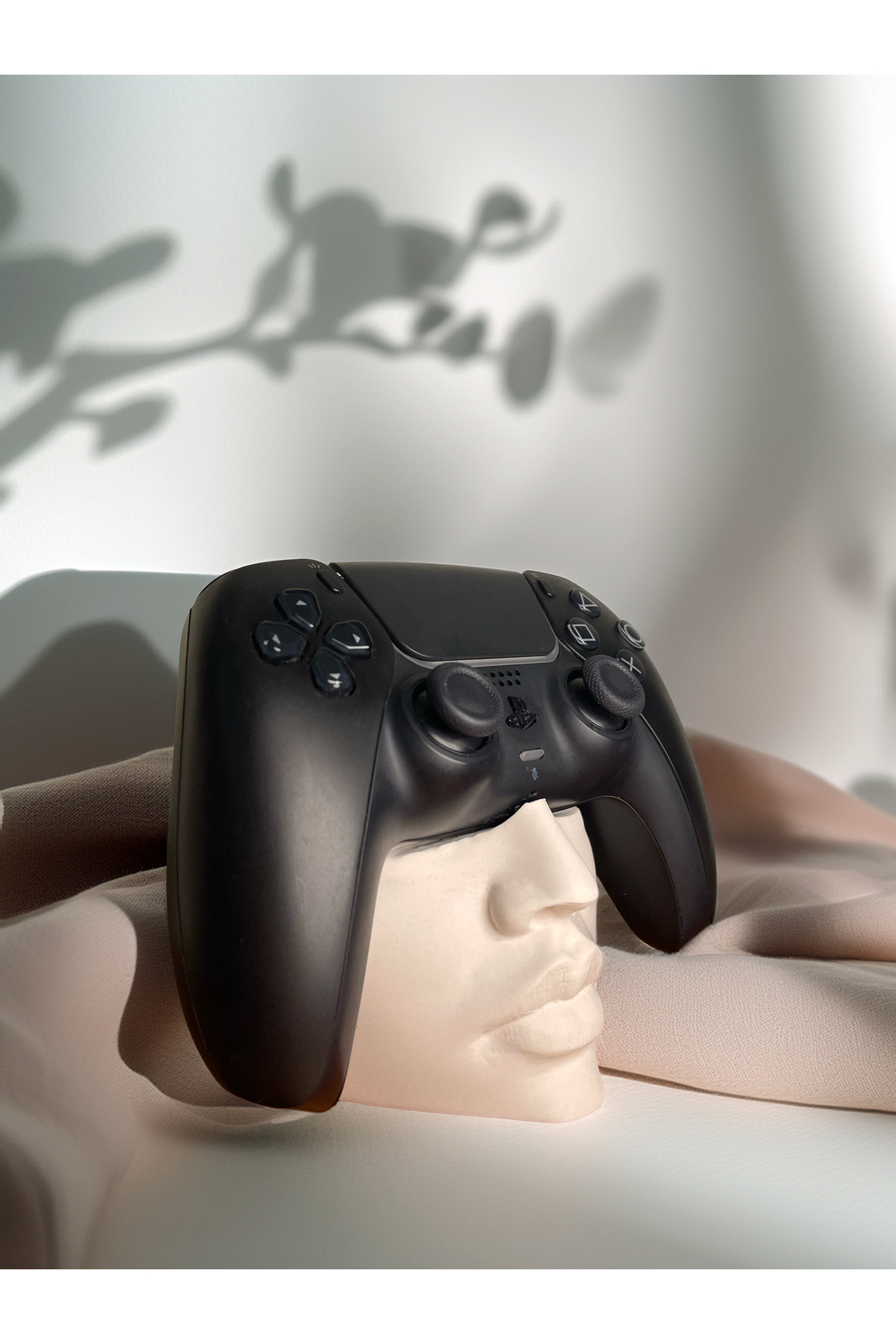PS5 DualSense Stand – Taş Tozu El Yapımı Playstation Konsol Tutucu (Yarım Yüz Beyaz Renk)