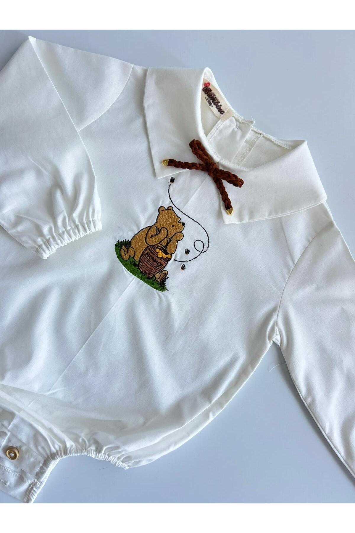 El Yapımı %100 Pamuk Erkek Bebek Winnie the pooh Nakışlı Gömlek - Uzun Kollu