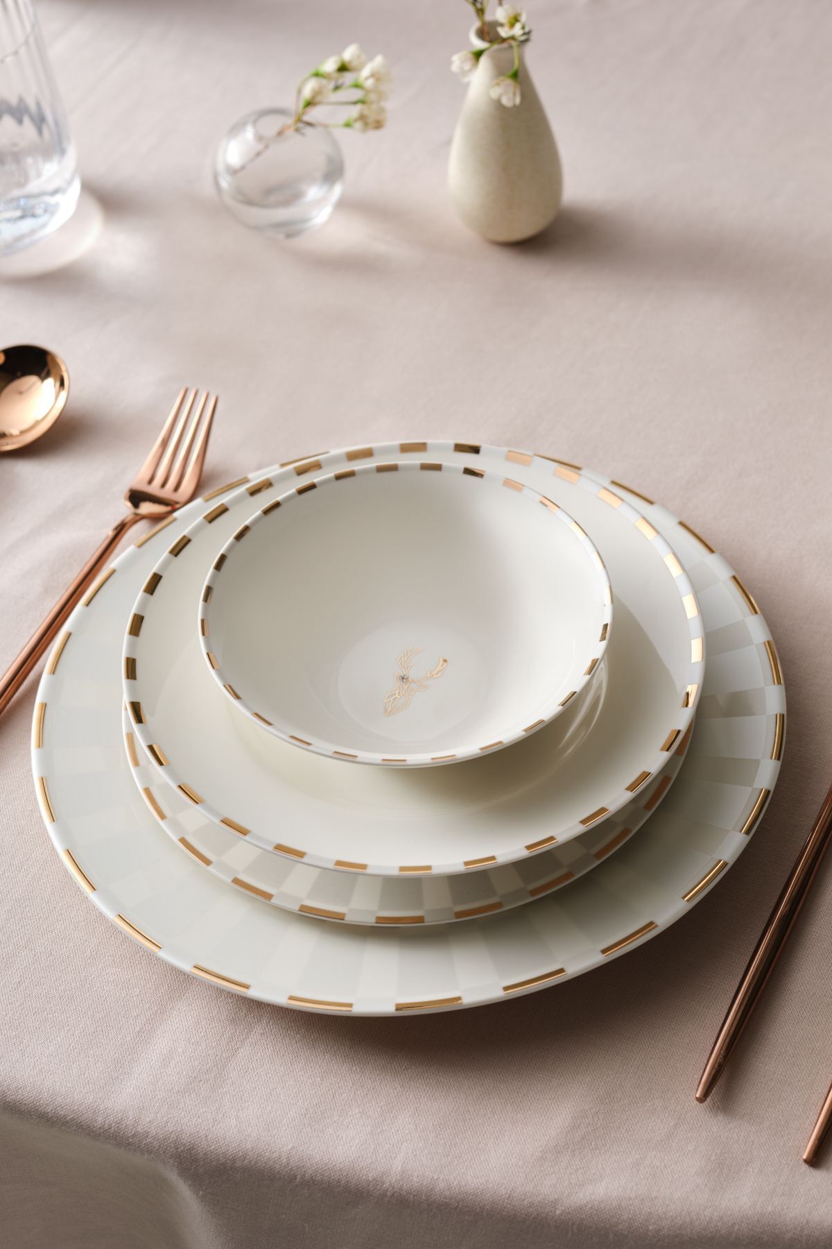 Yüksek kaliteli bone china materyali, dayanıklılığı ve şık duruşu ile öne çıkar
