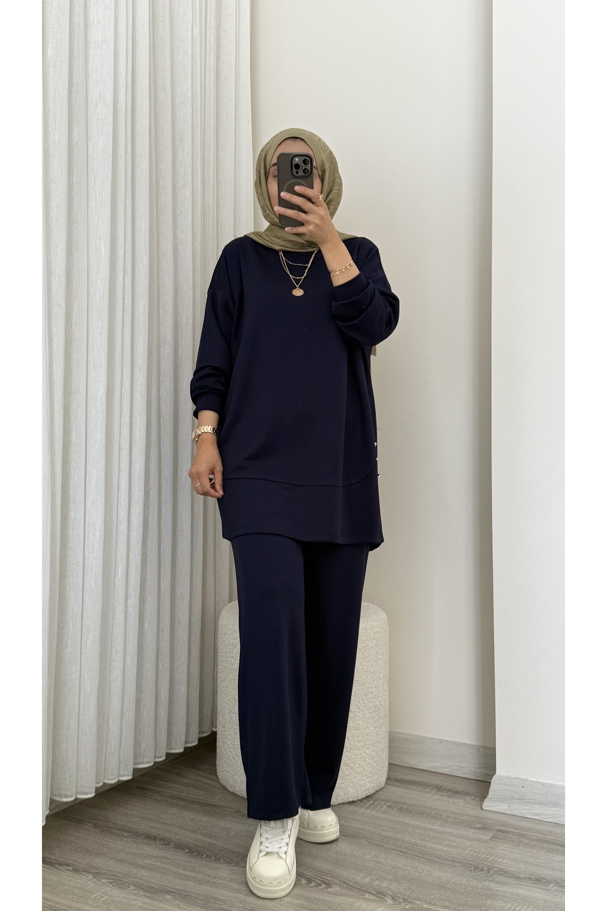 - Tunik ve pantolon kombinasyonu ile hem rahat hem de şık bir görünüm sağlar.