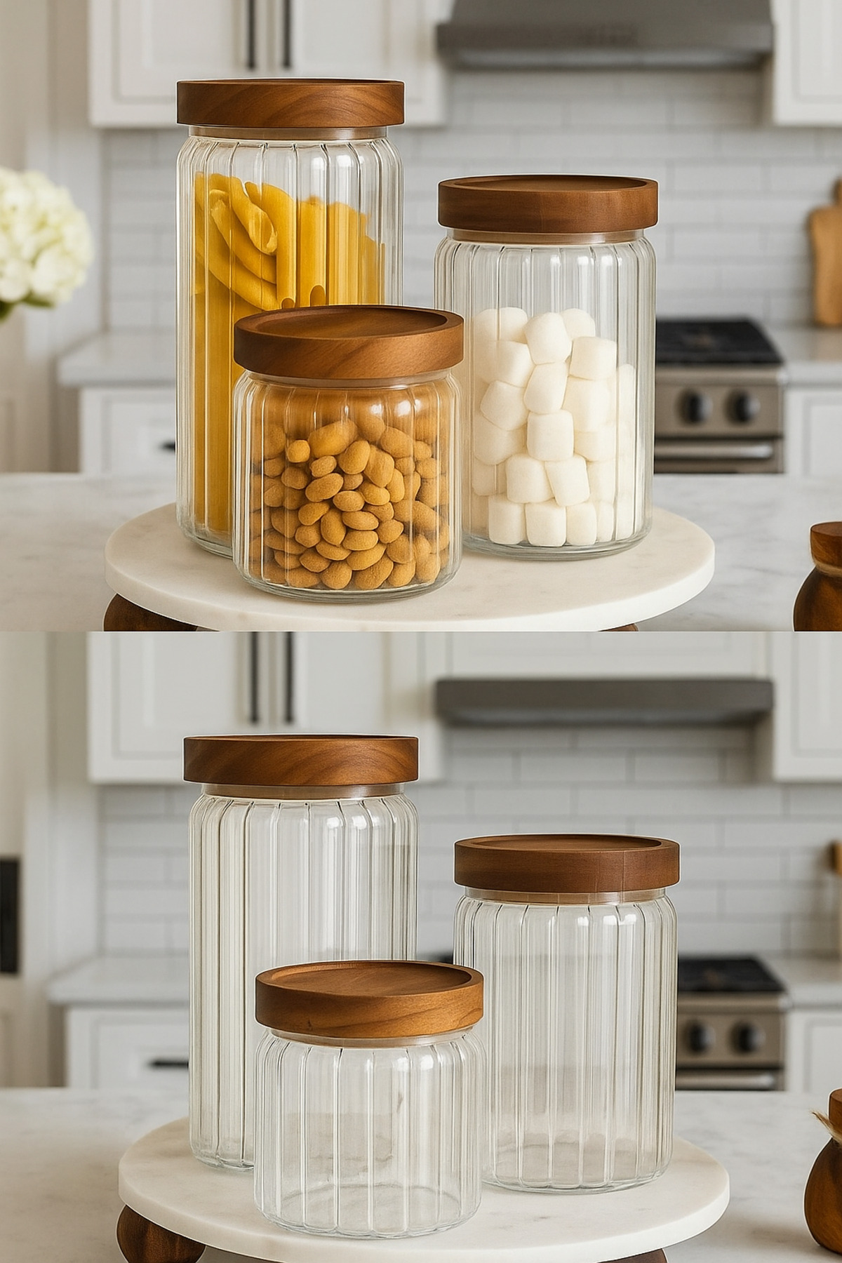 3'lü Vakumlu Akasya Kapaklı ERC Cam Kavanoz - Erzak/Bakliyat Saklama Kabı Seti Çay,Şeker,Kahve