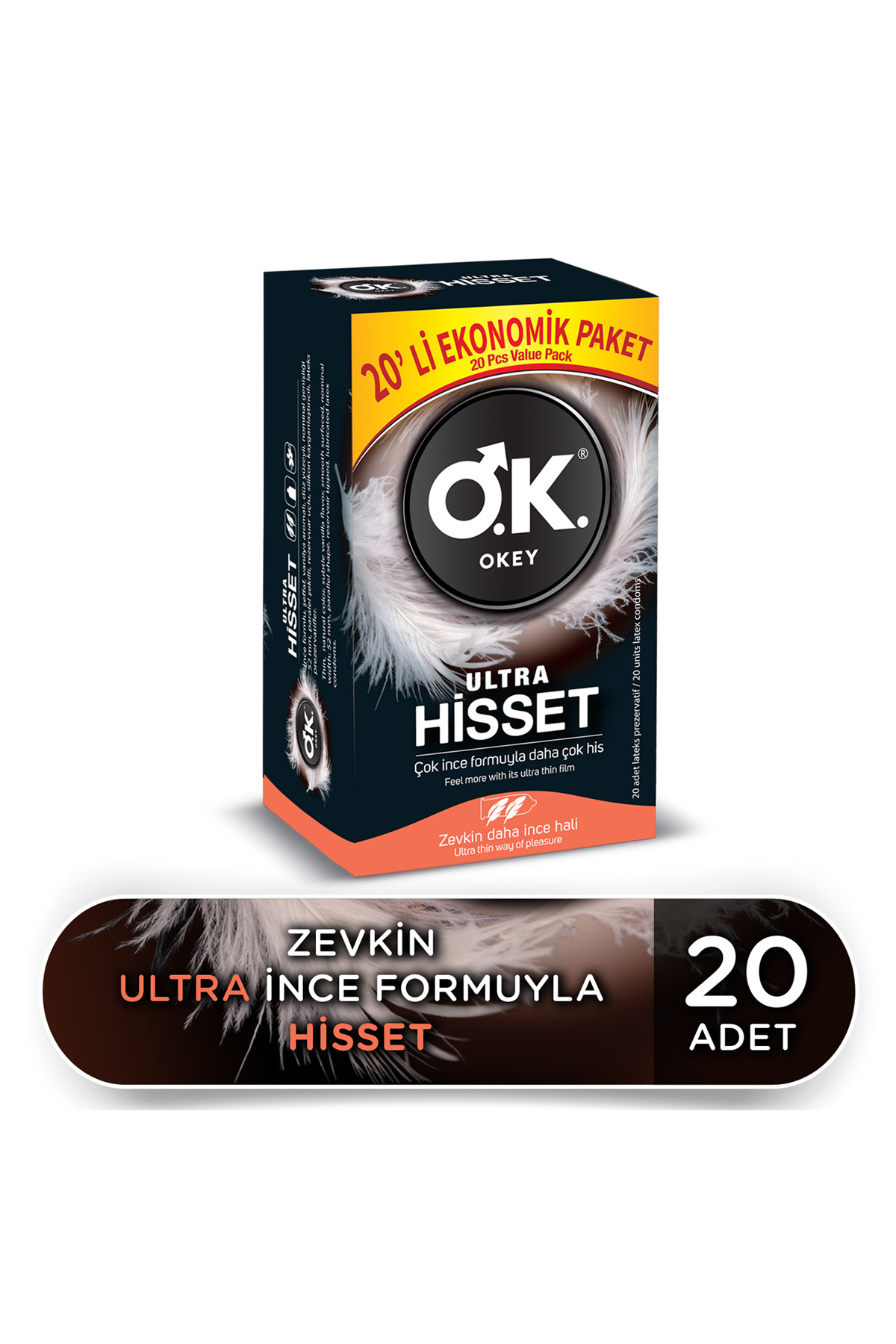Okey Ultra Hisset 20'li Prezervatif & OKEY Klasik 20'li Prezervatif Set Okey Ultra Hisset Ürün Ebatı: 52 +/- 2 mm.