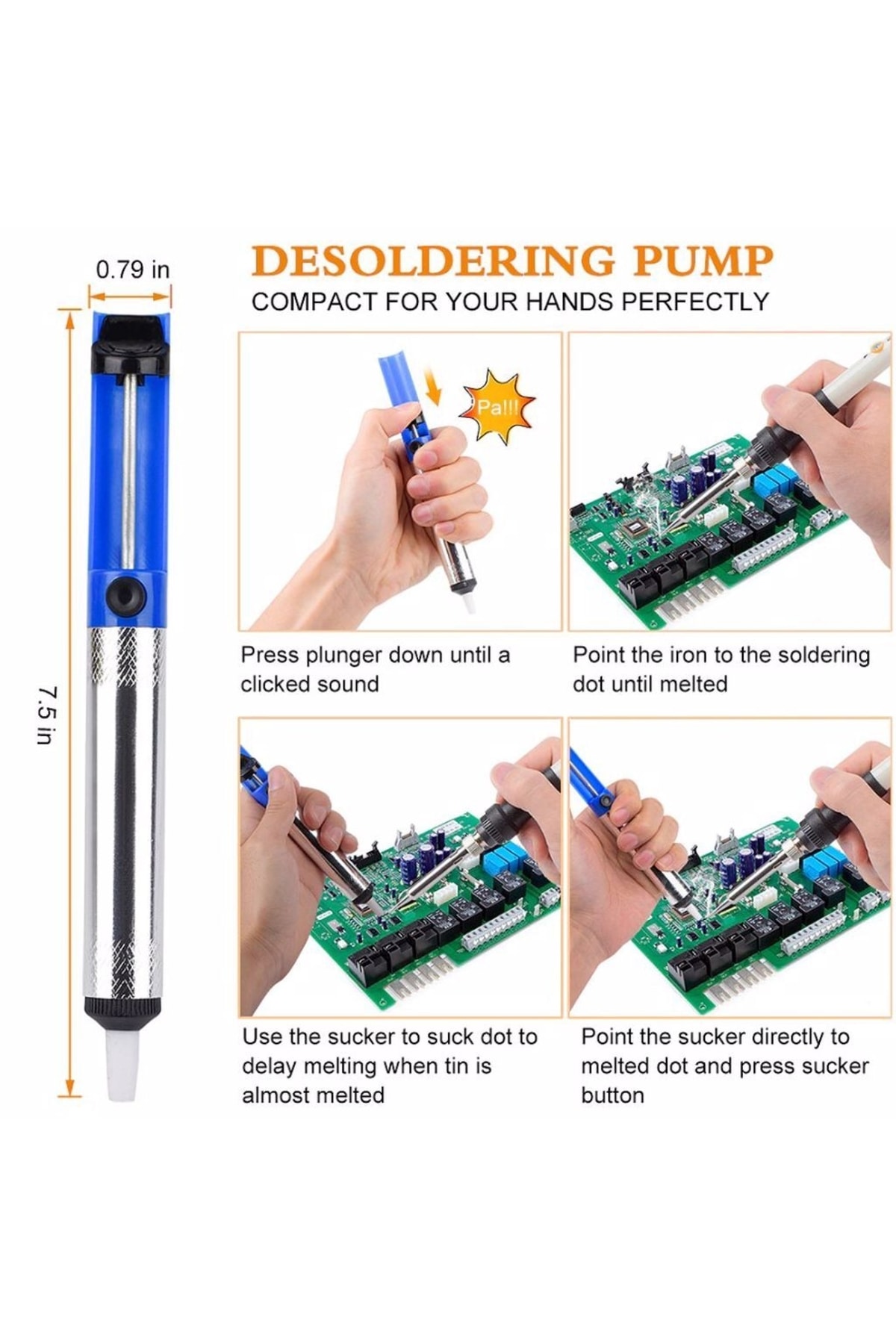 Metal Gövdeli Lehim Havya Pompası Lehim Sökücü Metal gövdeli temizlenebilir lehim pompası. Özellikle elektronik tamir işi ile uğraşan servis ve ustaların kullandığı eriyik lehim çekme aletidir. Ürün ölçüleri: Çap:19 mm Uzunluk 19 cm Paket içeriği: 1 Adet Lehim Pompası