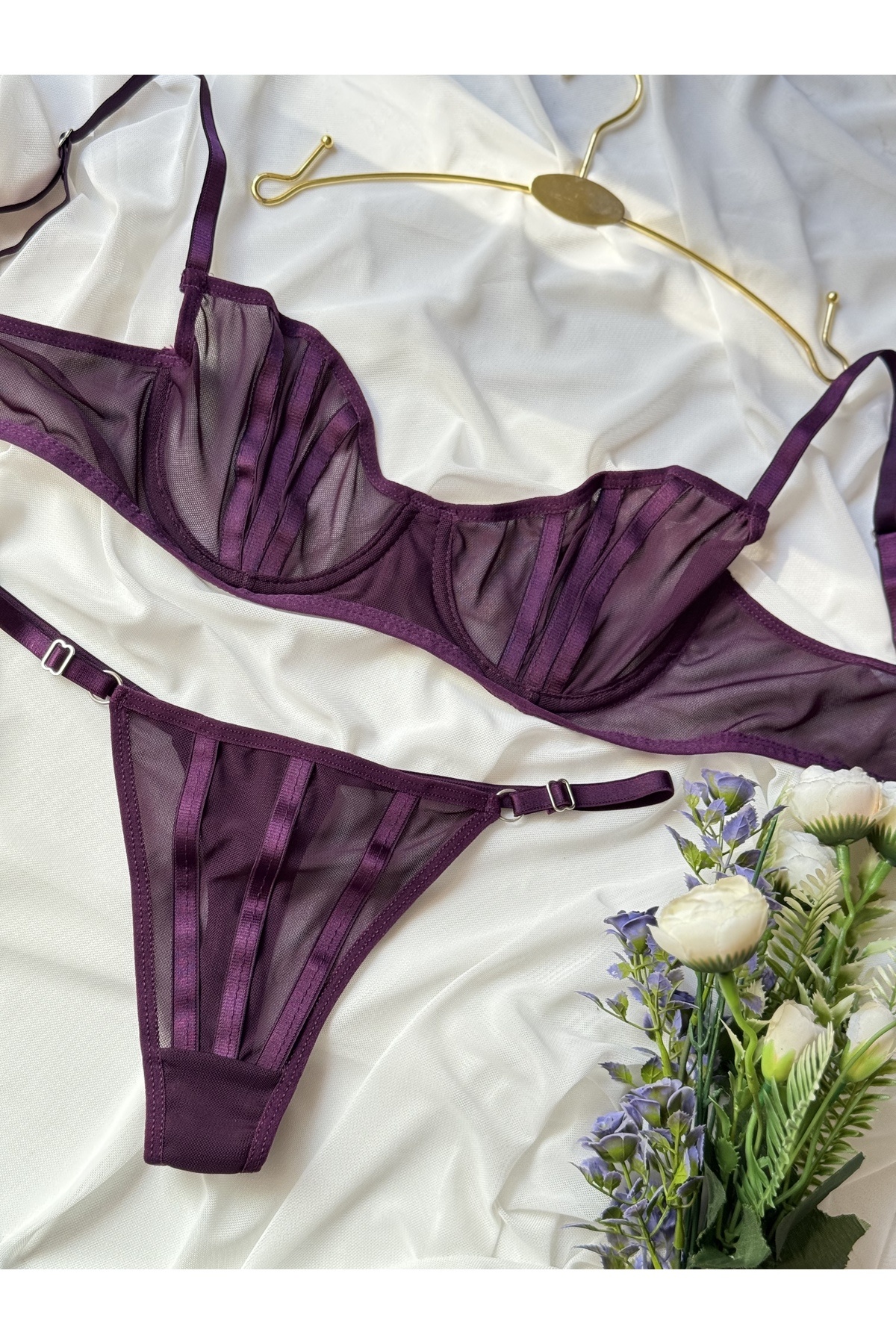 - Şık ve modern tasarımıyla dikkat çeken Şeritli Mor Brode Takım, kadın ve kız kullanıcılar için ideal bir seçenektir.