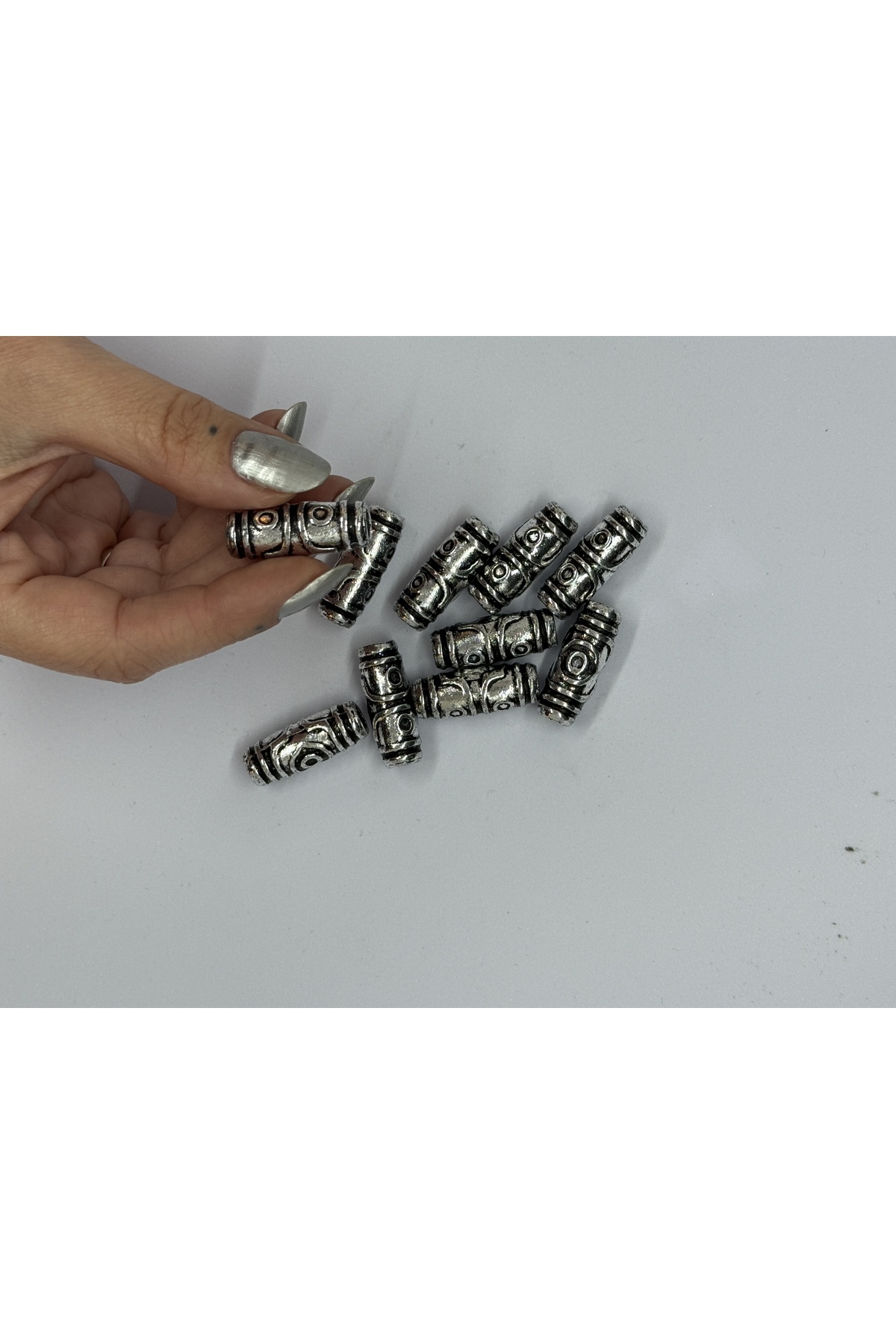 Viking Tarz Metal Sakal Boncuğu Gümüş Renk Desenli Viking Tarz 10’lu Set