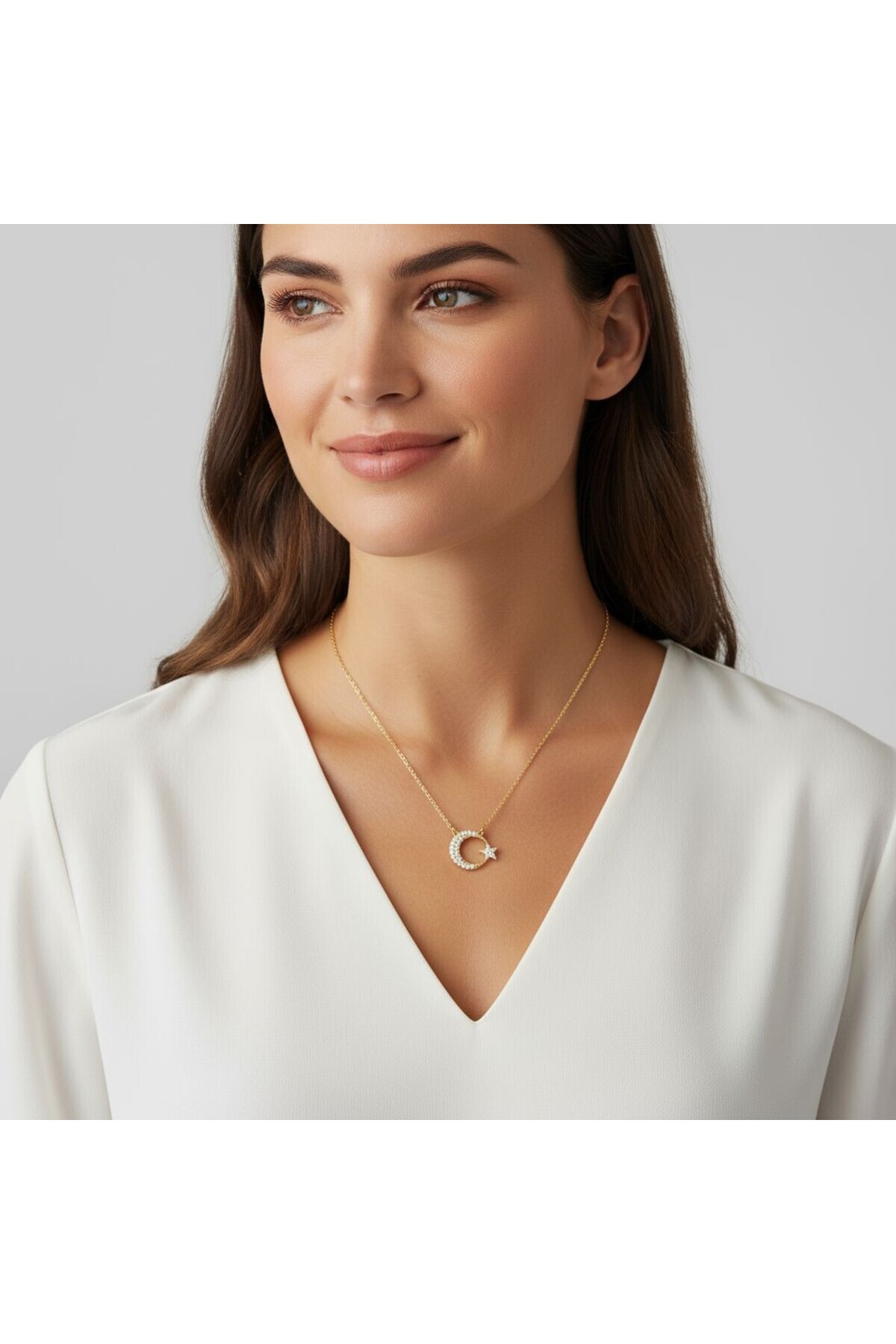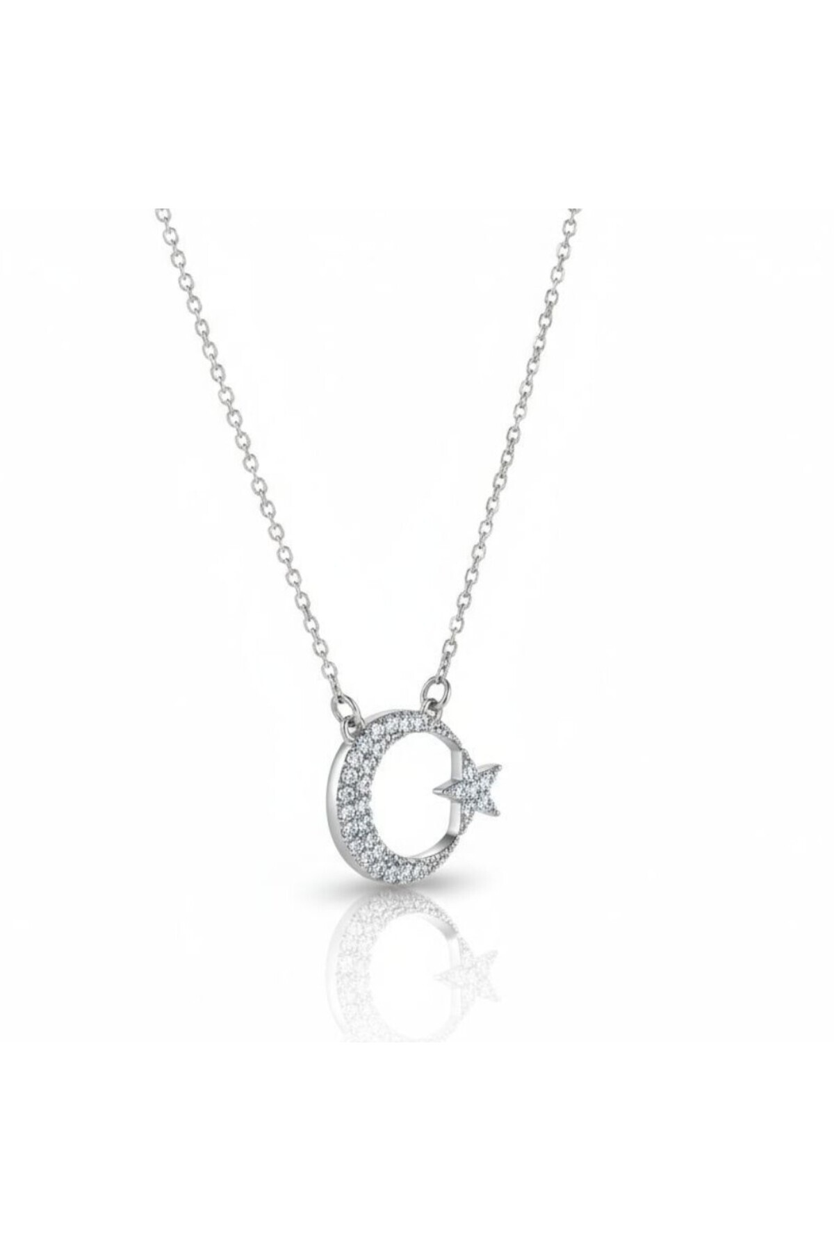 Ay Yıldız Türk Bayrağı Zirkon Taşlı Paslanmaz Çelik Kolye