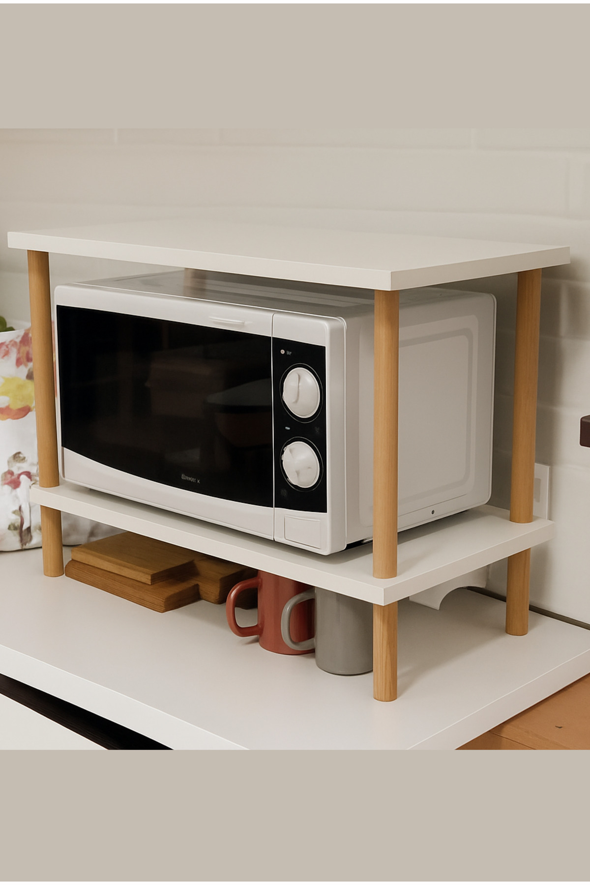 " Mikrodalga Fırın Rafı – Mutfağınıza Düzen ve Şıklık Katın! Bu mikrodalga fırın rafı, mutfak gereçlerinize ve malzemelerinize kolay erişim sağlayarak hem yerden hem de zamandan tasarruf etmenize yardımcı olur.