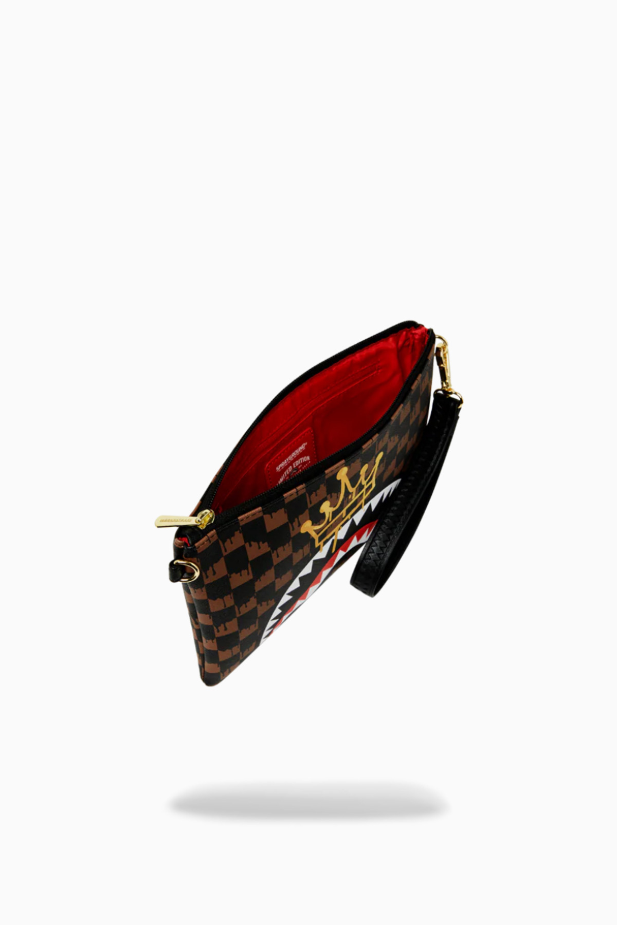Orijinal Drip Check Crown x KA1 Clutch Brown, özel işçilikli kahverengi deri yüzeyi ve ikonik tasarımıyla lüks stili yansıtır.