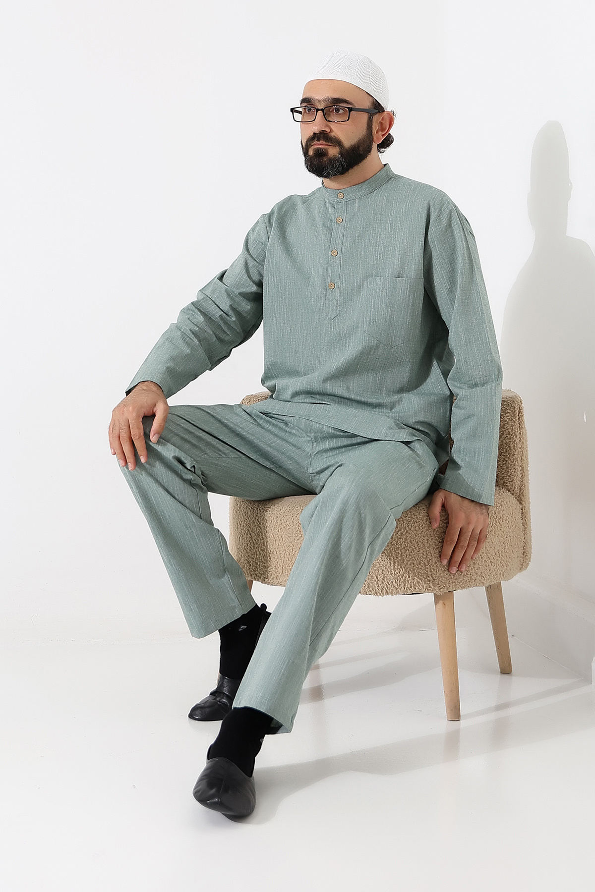 Erkek Tek Cepli Gömlek Pantolon İkili Takım Hac ve Umre Kıyafeti Yeşil (Vşn)
