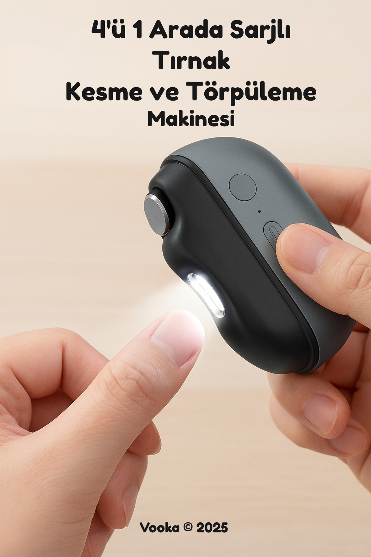 4’ü 1 Arada Şarjlı Tırnak Kesme ve Törpüleme Makinesi | LED Işıklı, Sessiz Motorlu, Taşınabilir Mani