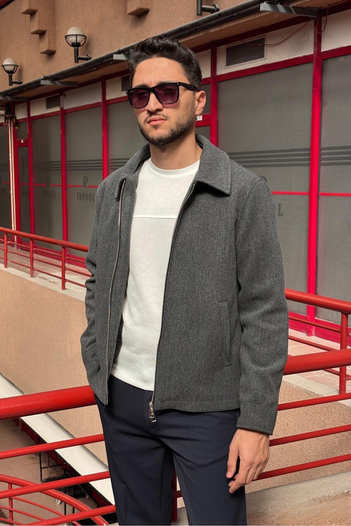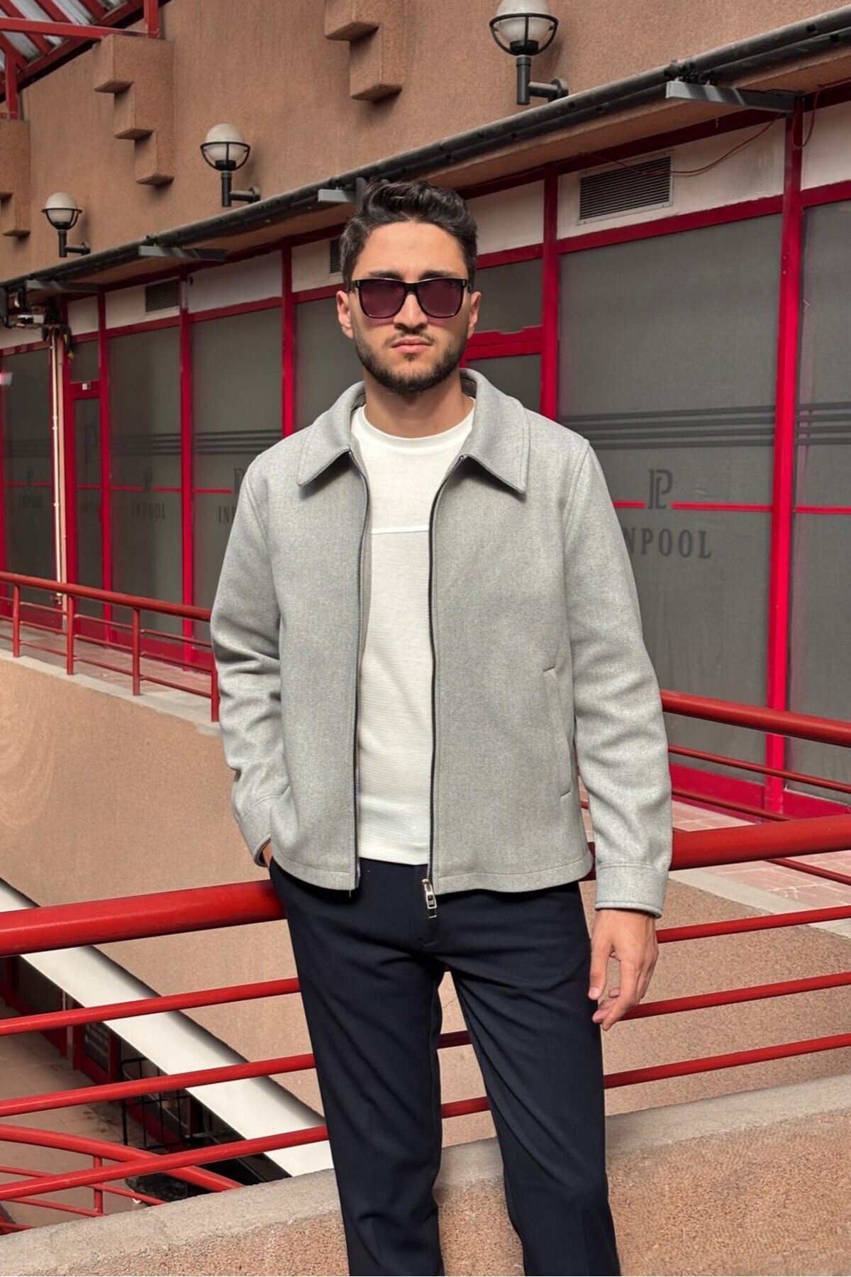 Erkek, Standart-Fit, Fermuar detaylı, Gömlek yaka, kaşe ceket 626. Mankenimiz 186 Cm boy ve 80 Kg ölçülerinde olup L beden giymektedir.