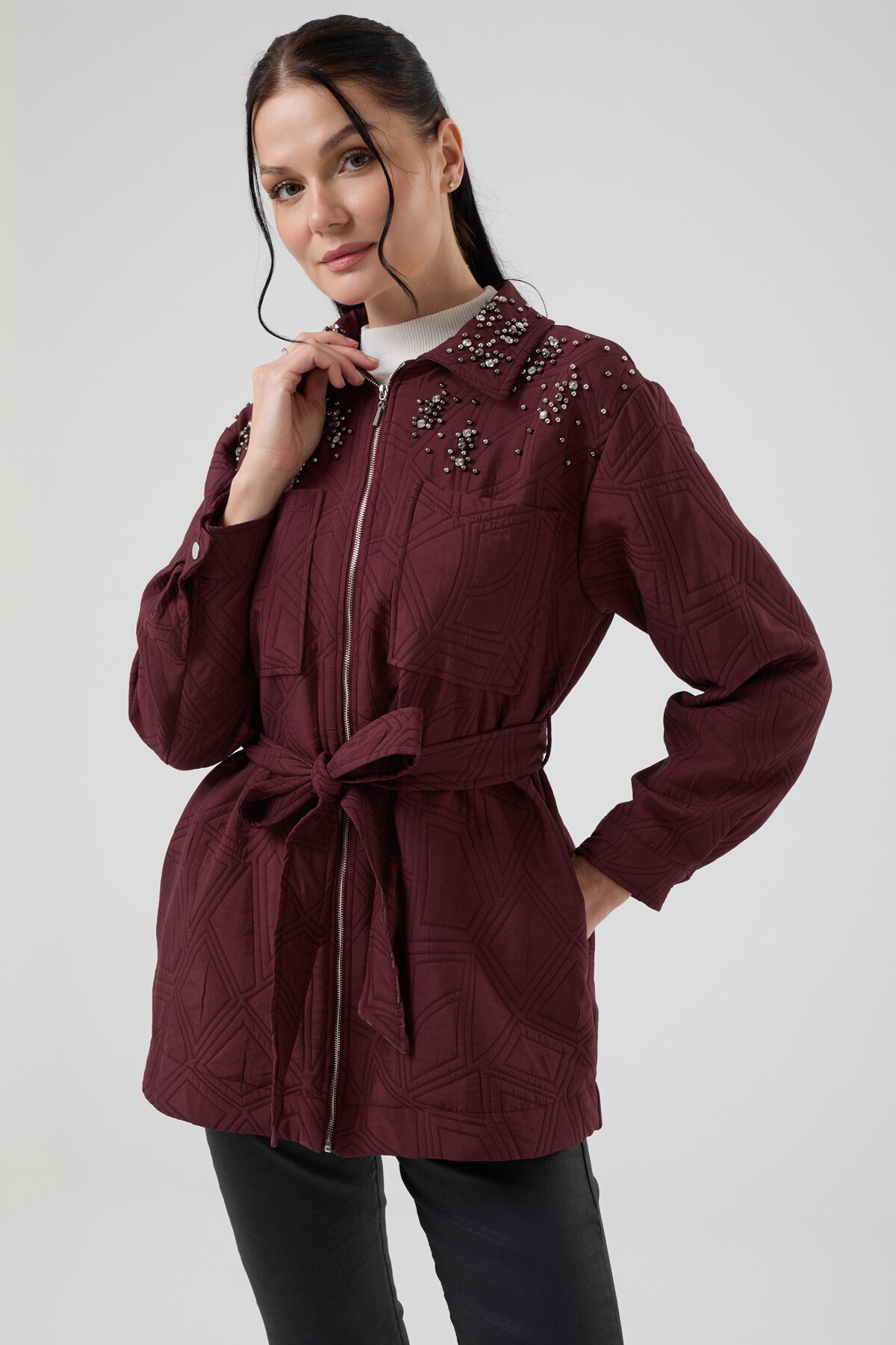 • Kadın Yaka Taş Detaylı Kapitone Ceket 9270