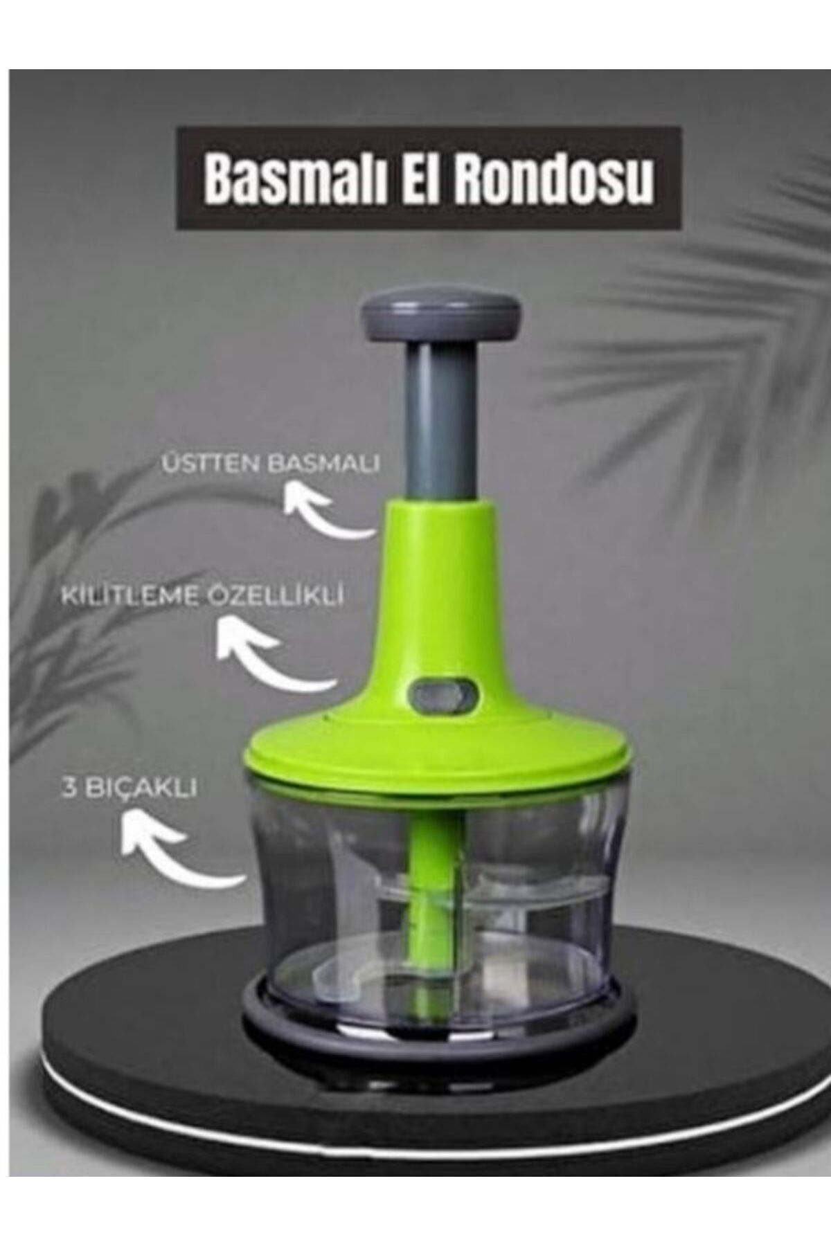 Basmalı El Rondosu 3 Çelik Bıçaklı 1 lt Hazneli Sebze Meyve Soğan Doğrayıcı Mutfak El Robotu Kesici