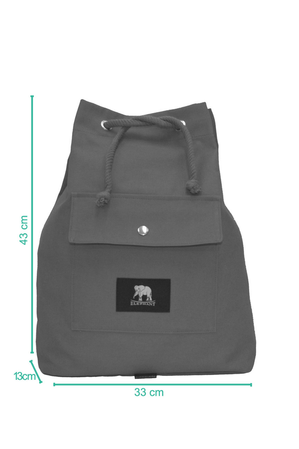 İp Büzgülü Kanvas Cepli Sırt Çantası Ölçüleri: 33 cm (En), 43 cm (Yükseklik), 13 cm (Alt Körük)