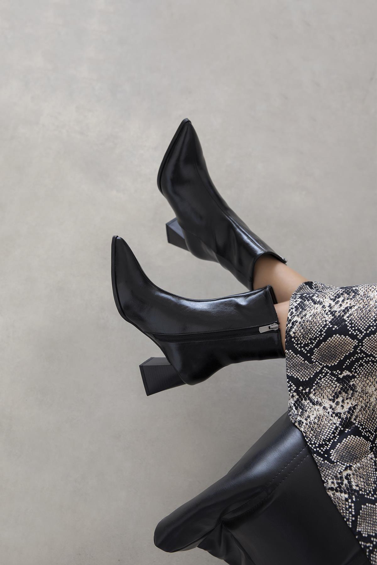 - Sivri burun tasarımı ile modern ve zarif bir siluet oluşturur.