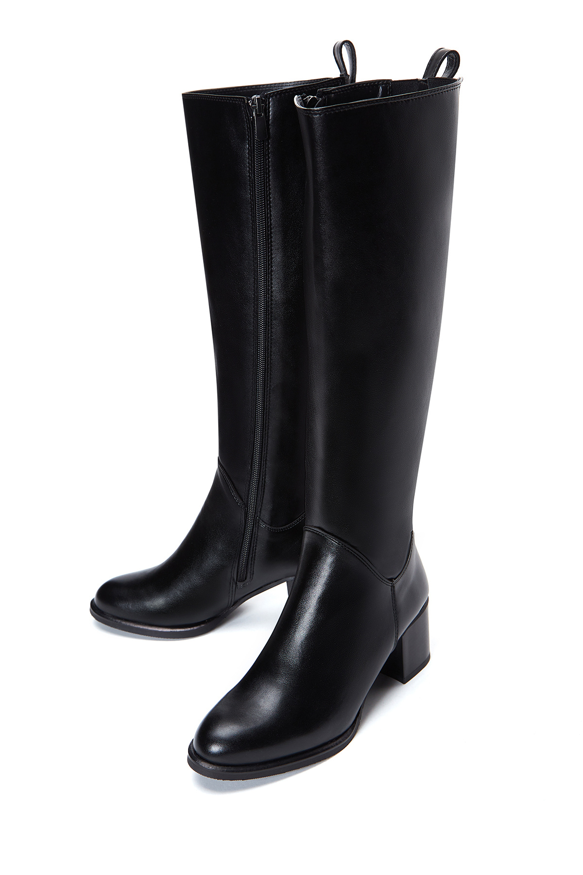 • Kadın Siyah Fermuarlı Kalın Topuklu Çizme