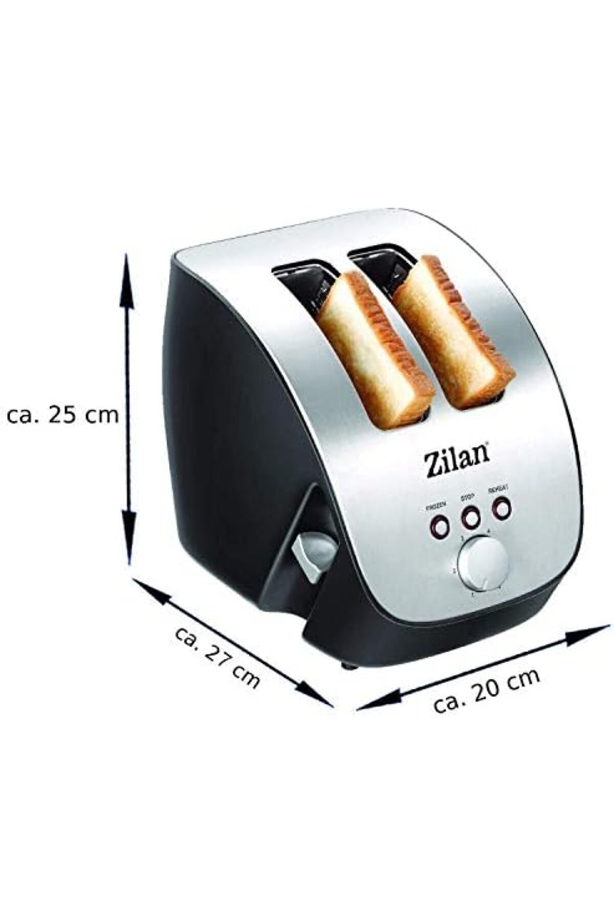 : 80 cm Akım gerilimi: 230 V~, 50 Hz çelik ekmek kızartma makinesi | 2 dilim ekmek kızartma makinesi | tasarım ekmek kızartma makinesi | eğimli tost makinesi | kızartma makinesi | 1000 Watt | paslanmaz çelik gövde | kademesiz ayarlanabilir | INOX tasarım |