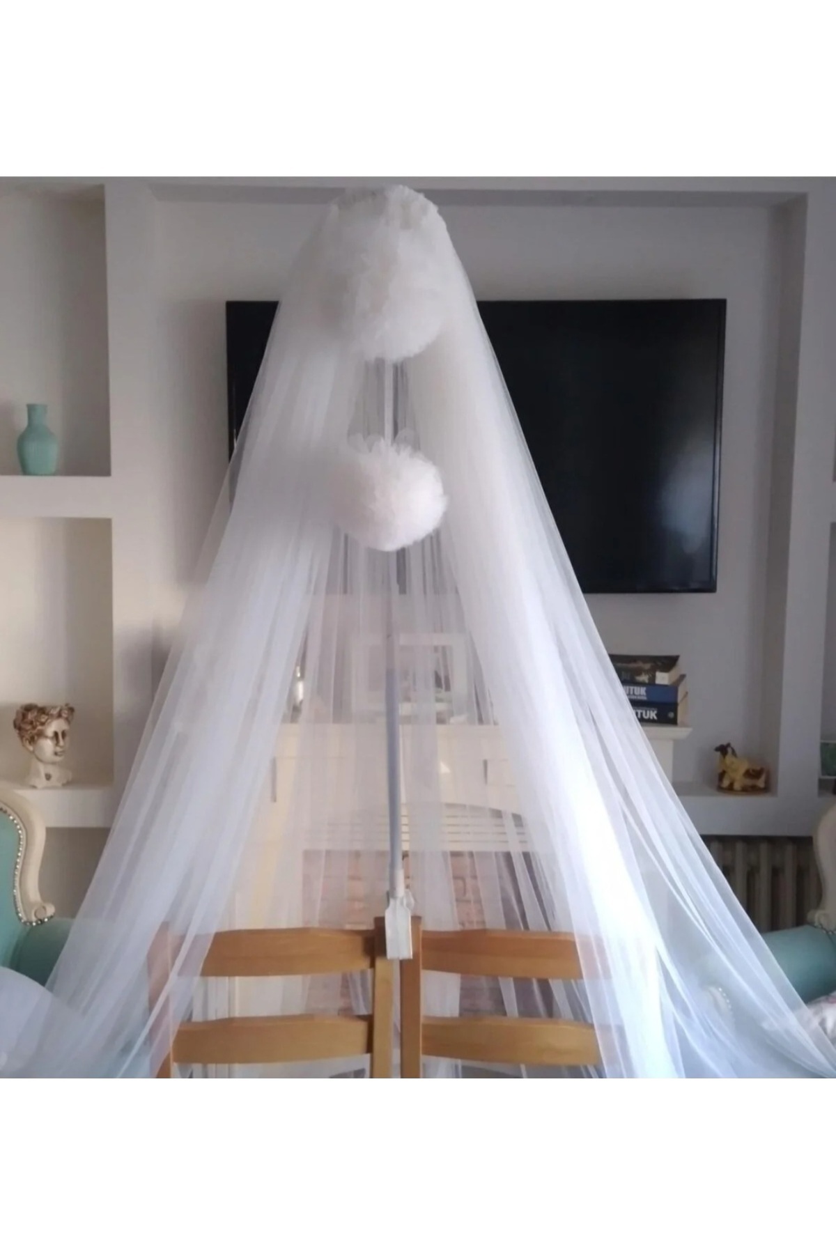 - 6 metre genişliğindeki 1.85 cm yüksekliginde ponponlu tasarım, bebeğinizin beşiğini zarif bir şekilde süsler ve şık bir görünüm kazandırır.