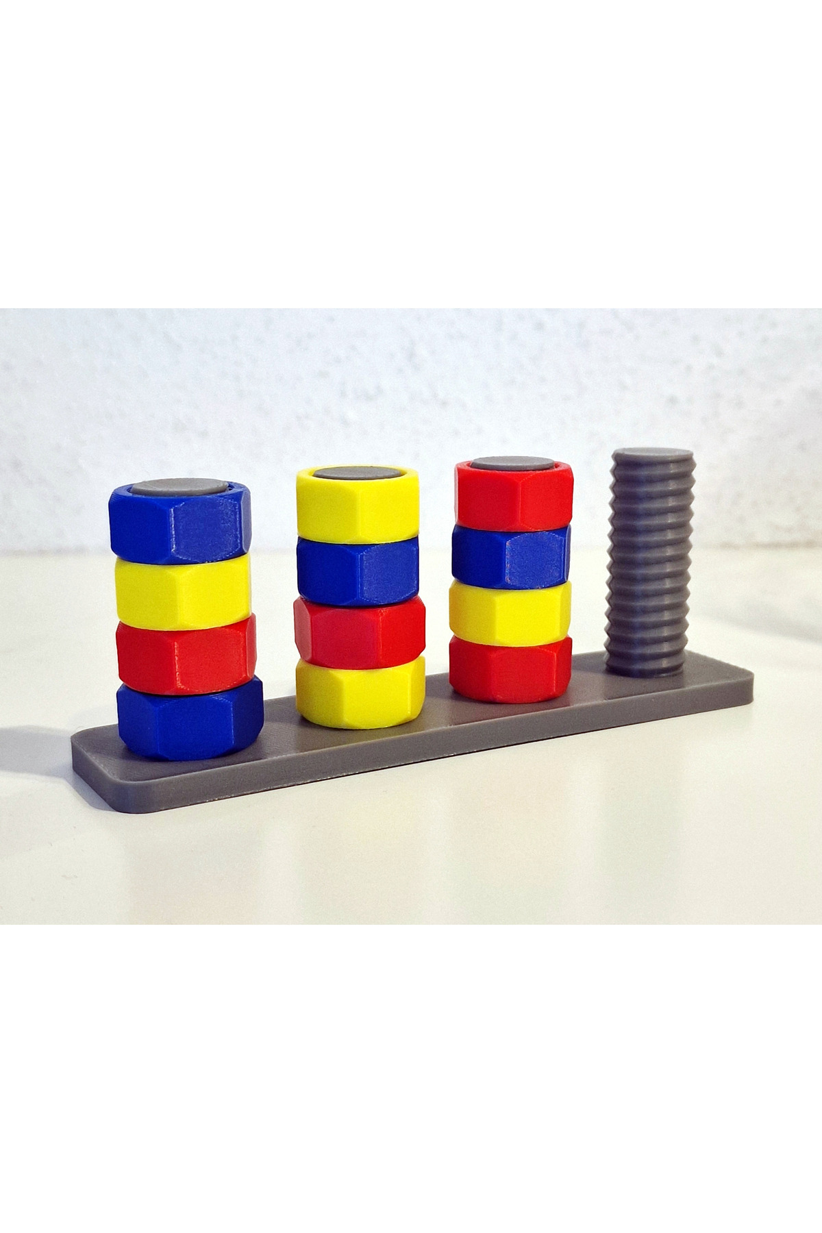 Vida Somun Eşleştirme Oyunu - Renkli Montessori El Becerisi ve Motor Gelişim Oyuncağı
