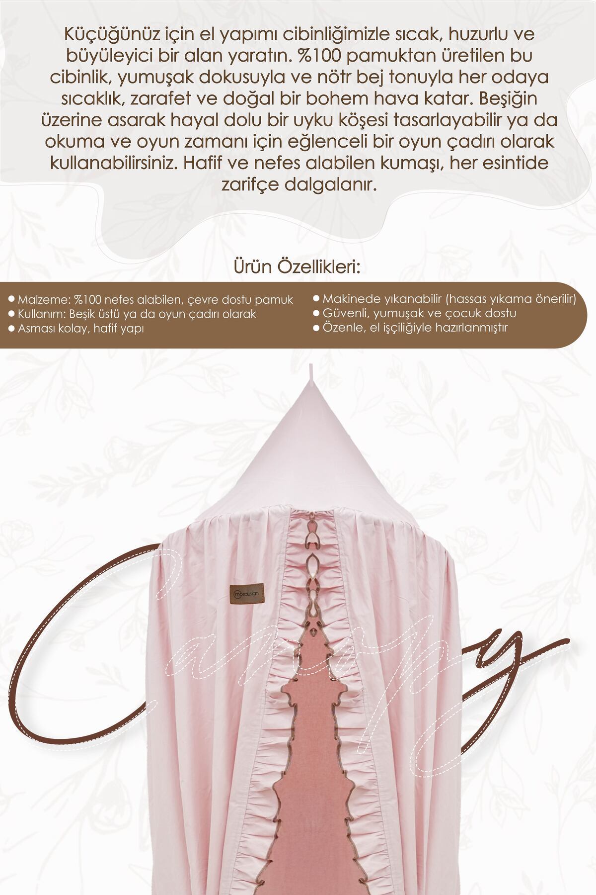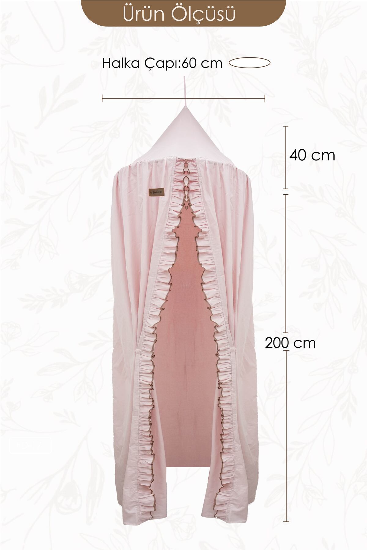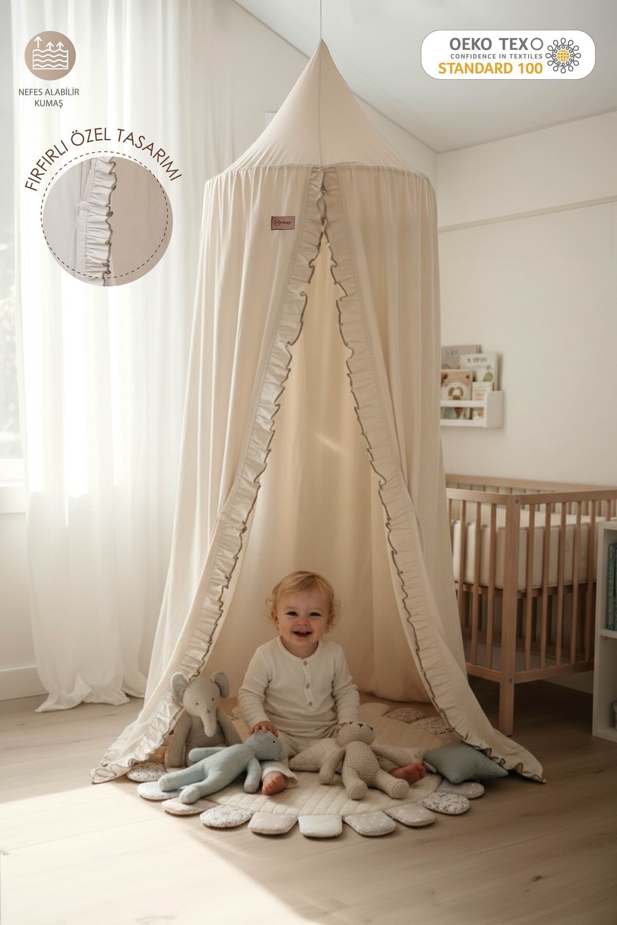 Fırfır Detaylı %100 Pamuk Kanopi Beşik ve Oyun Alanı İçin Dekoratif Cibinlik
