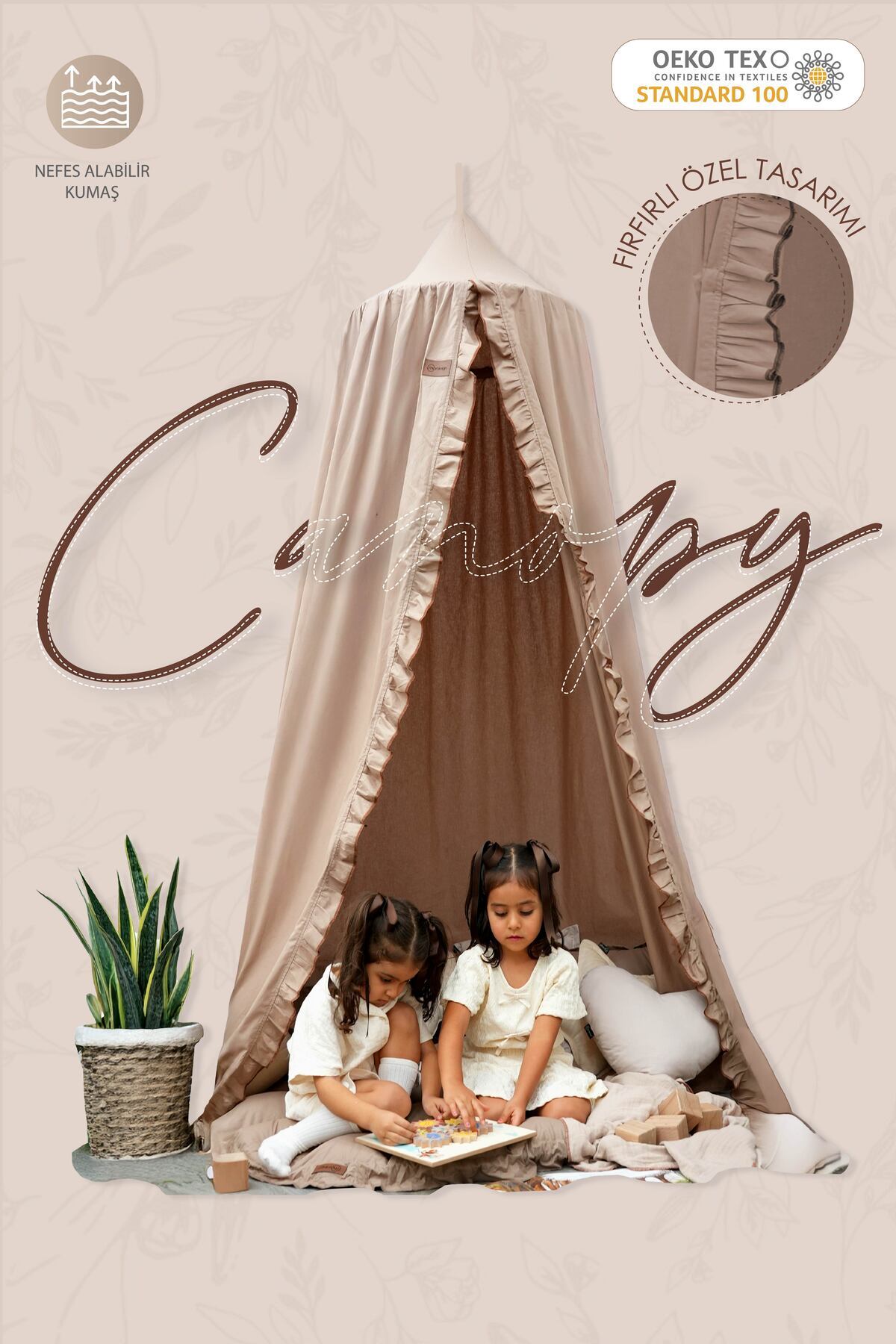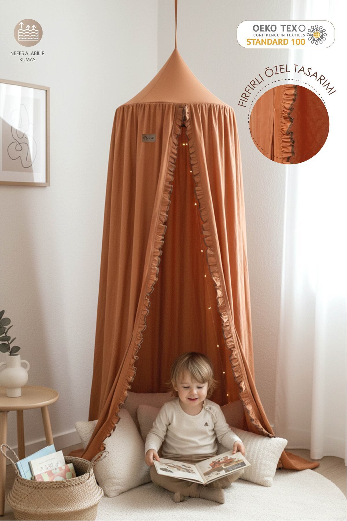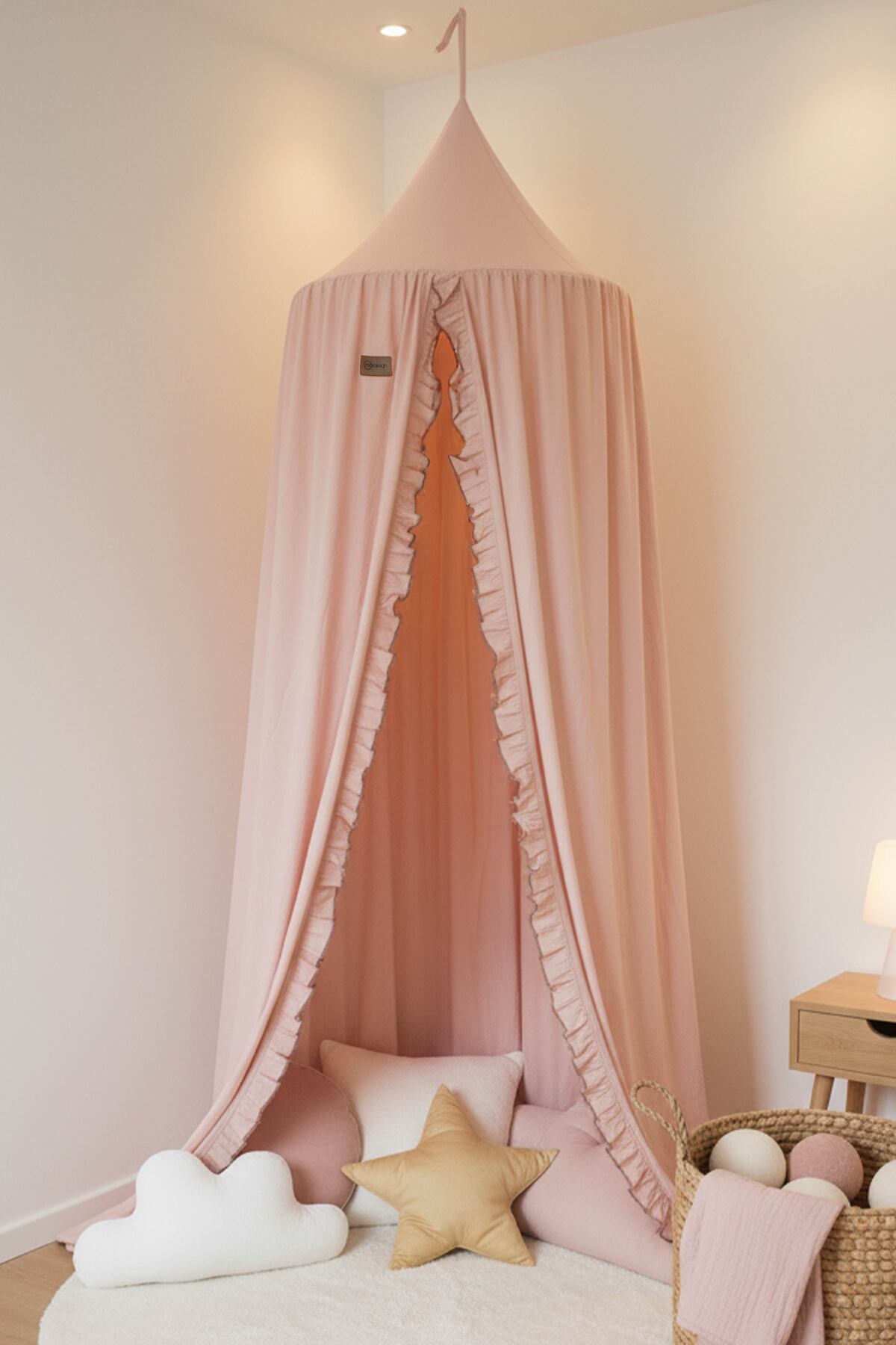 Fırfır Detaylı %100 Pamuk Kanopi Beşik ve Oyun Alanı İçin Dekoratif Cibinlik