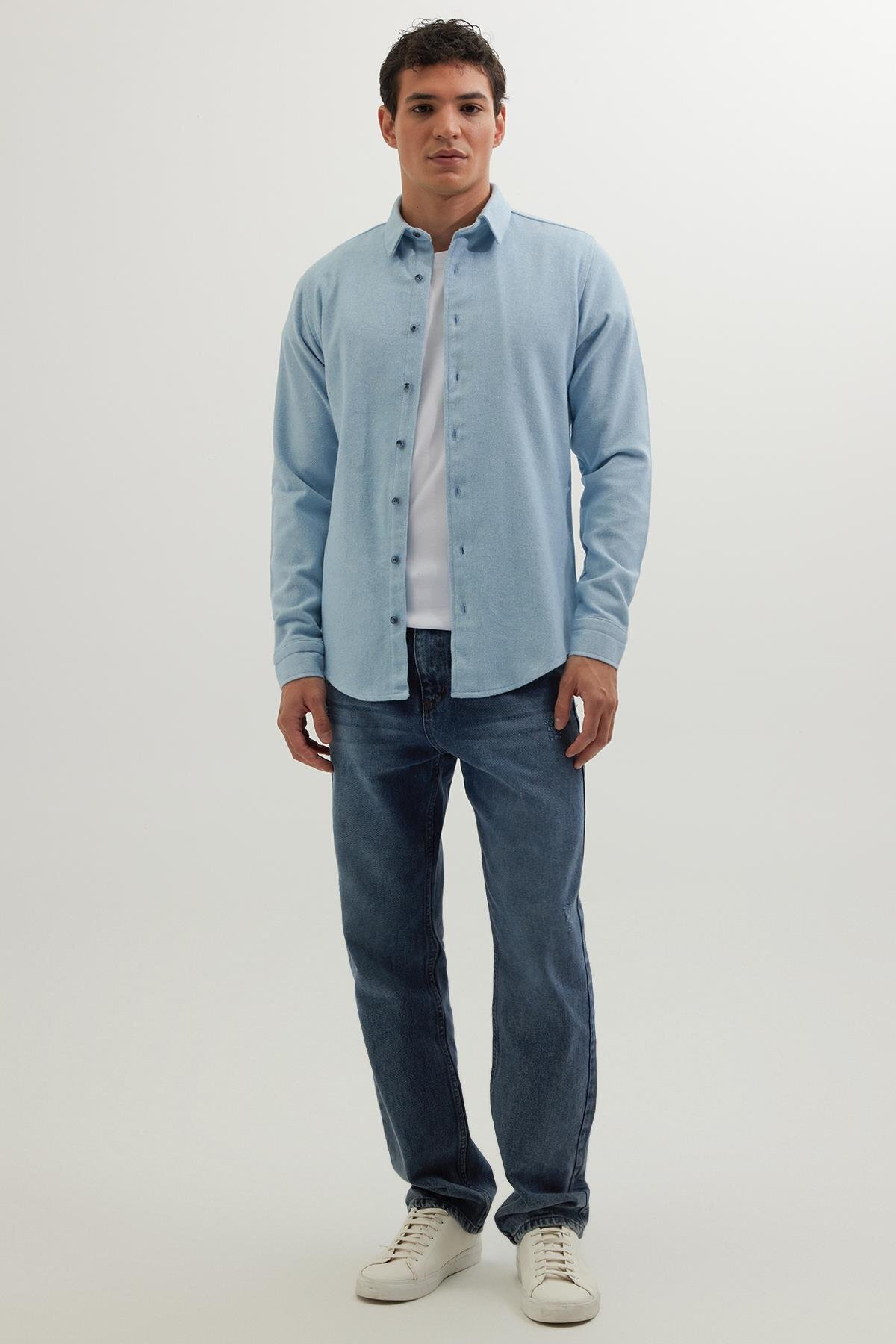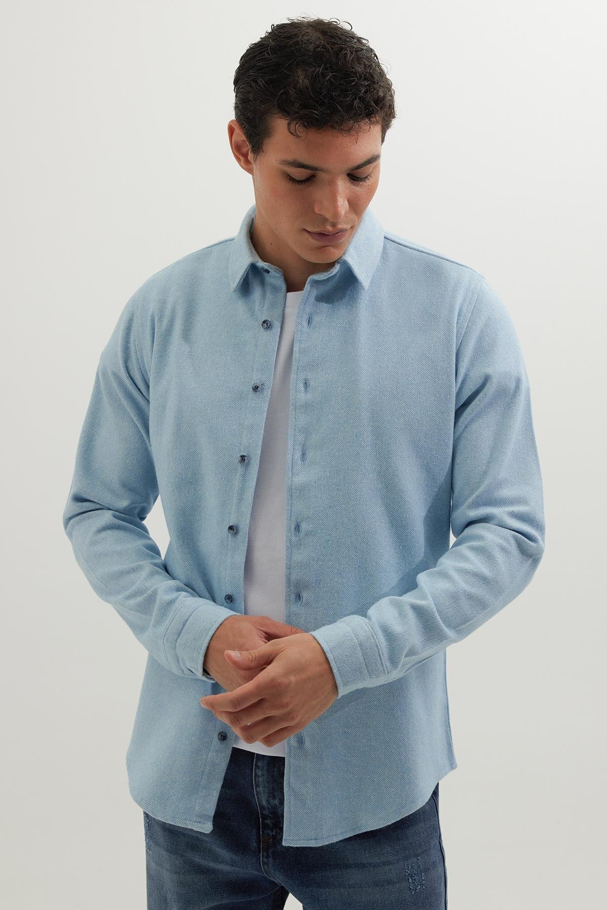 Erkek Slim Fit Dar Kesim Uzun Kollu Düz Kışlık Oduncu Mavi Gömlek