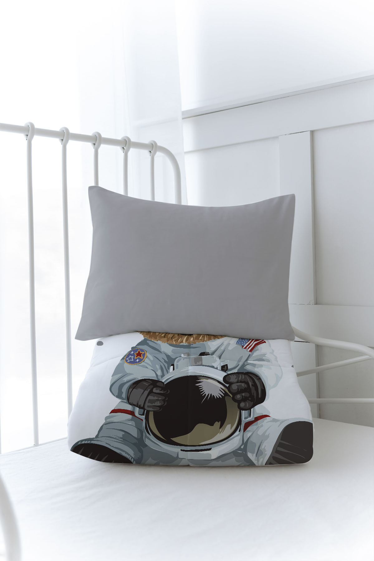 Organik Baskılı Bebek (100x150 Cm) Yorgan Seti - Iconic Serisi - Astronot Ayıcık