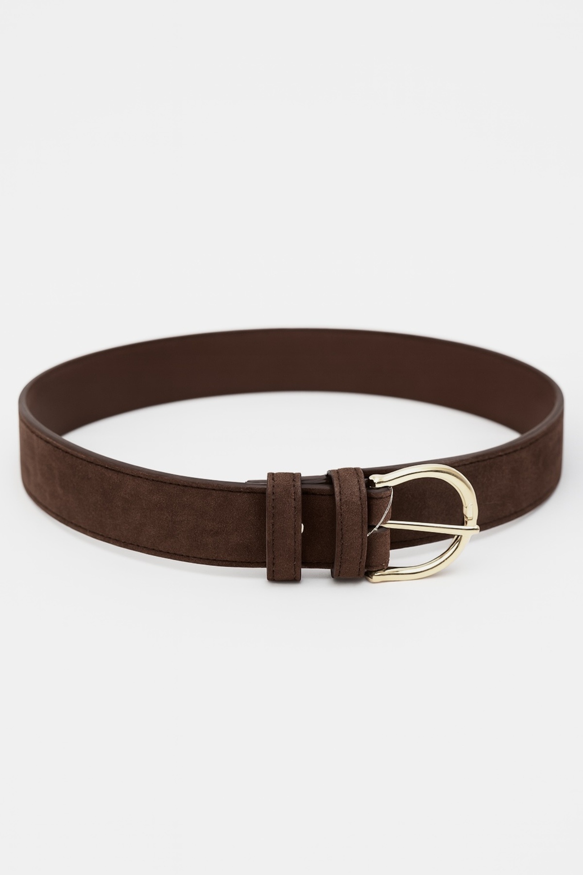 Kadın Süet Kemer Gold Tokalı Kahverengi