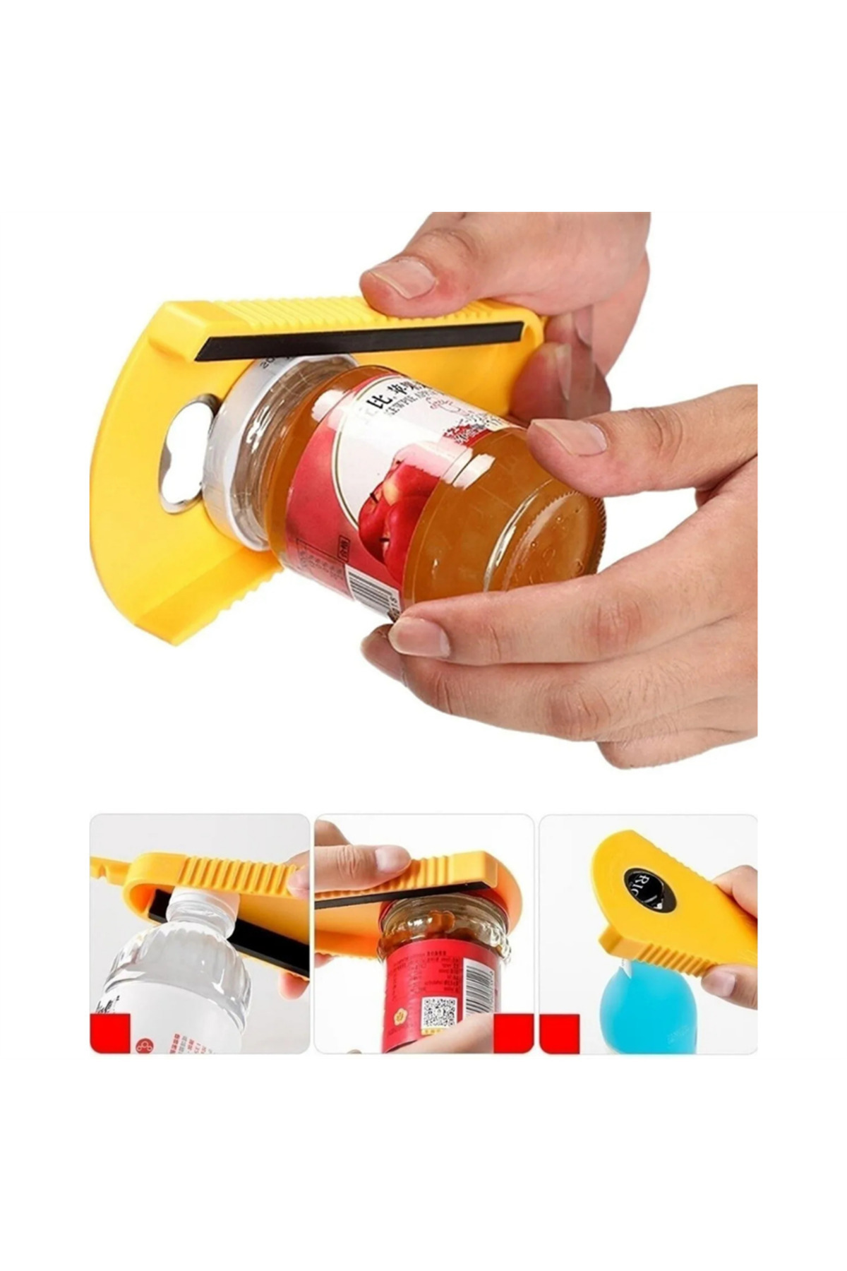 V şeklinde tasarım, çeşitli şişe kapaklarına uygun, farklı boyutlardaki kapaklara uygun, vidalı tip yuvarlak kapaklar 3-7 cm çapında açılabilir, kullanışlı ve pratik