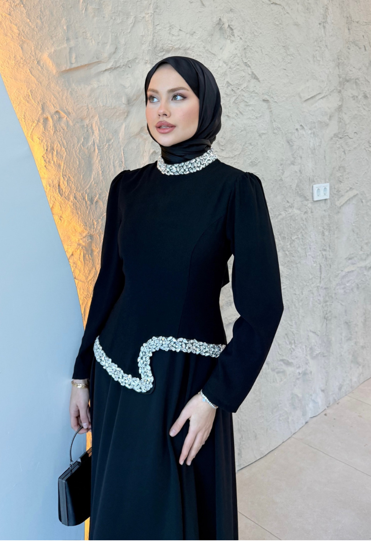 KOMBİN ÖNERİLERİ Klasik şıklık: Abiye + Nude topuklu ayakkabı + Saten clutch Modern tarz: Abiye + Gümüş aksesuarlar + Topuksuz terlik Özel gün kombin: Abiye + İnce altın kolye + Zarif küpe seti Şık tesettür: Abiye + Açık renk eşarp + Deri çanta KUMAŞ BAKIMI 30°C'de hassas veya kısa program / elde yıkama Ağartıcı kullanmayınız Düşük devirde kısa sıkma veya hiç sıkmadan havlu ile nem alın Kurutma makinesi kullanmayınız