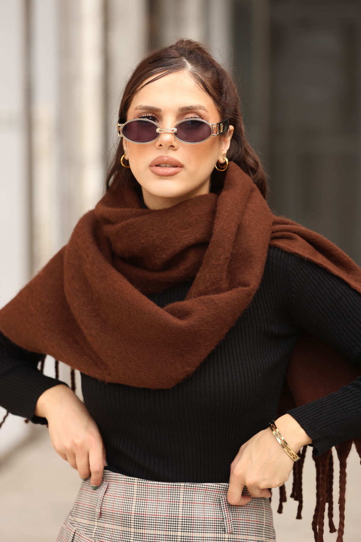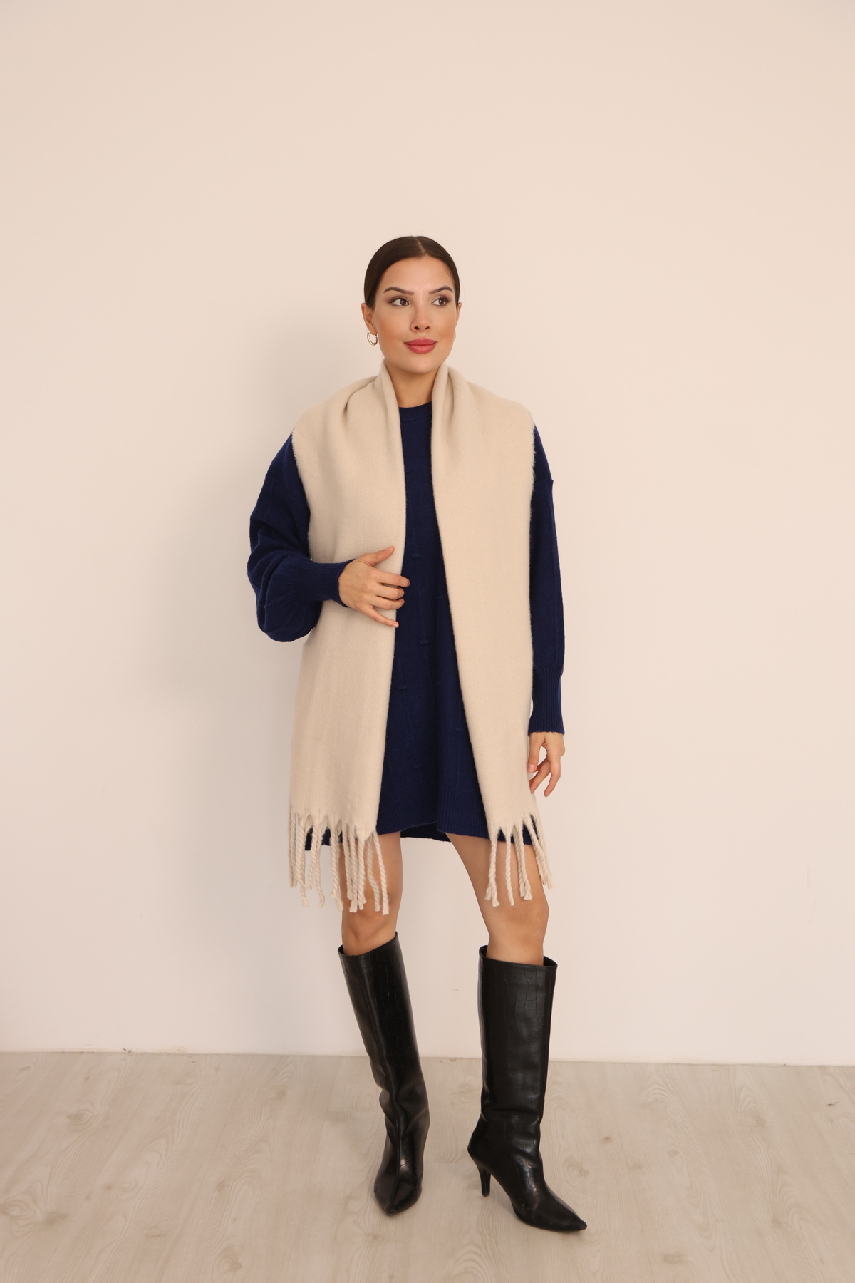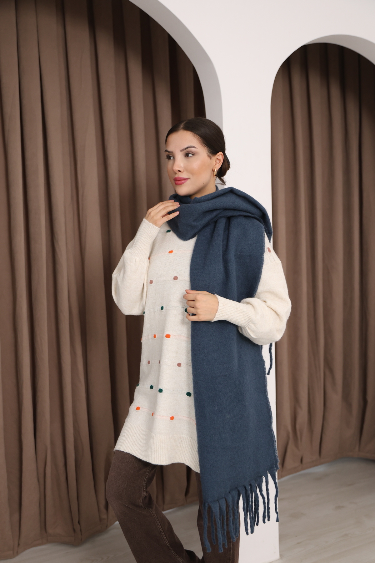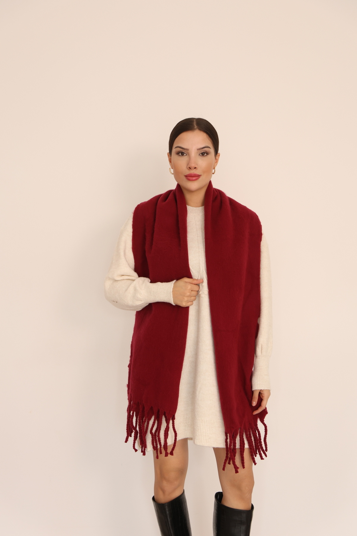 Örme kumaş Düz kesim Püsküllü bitiş Yumuşak Dokulu Kadın Atkı Şal Omuz Şalı 190.0x50.0 cm