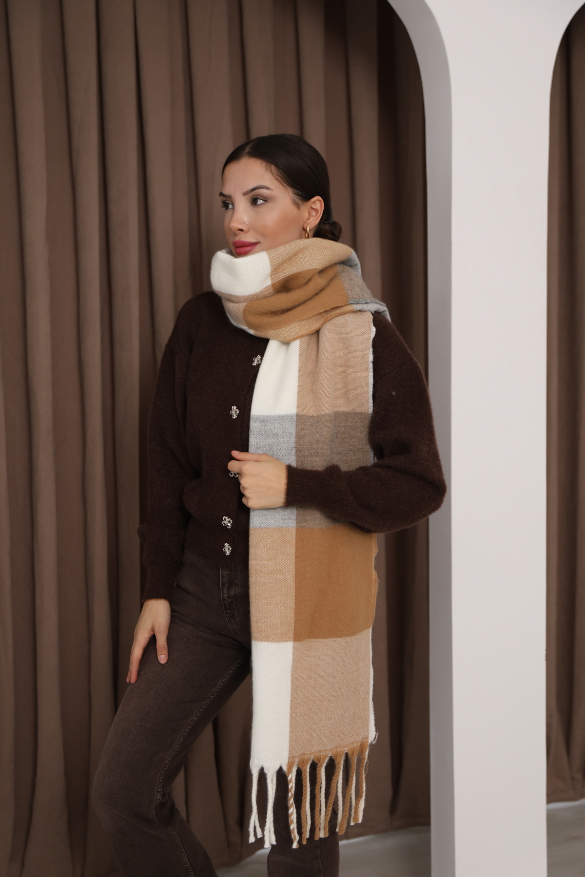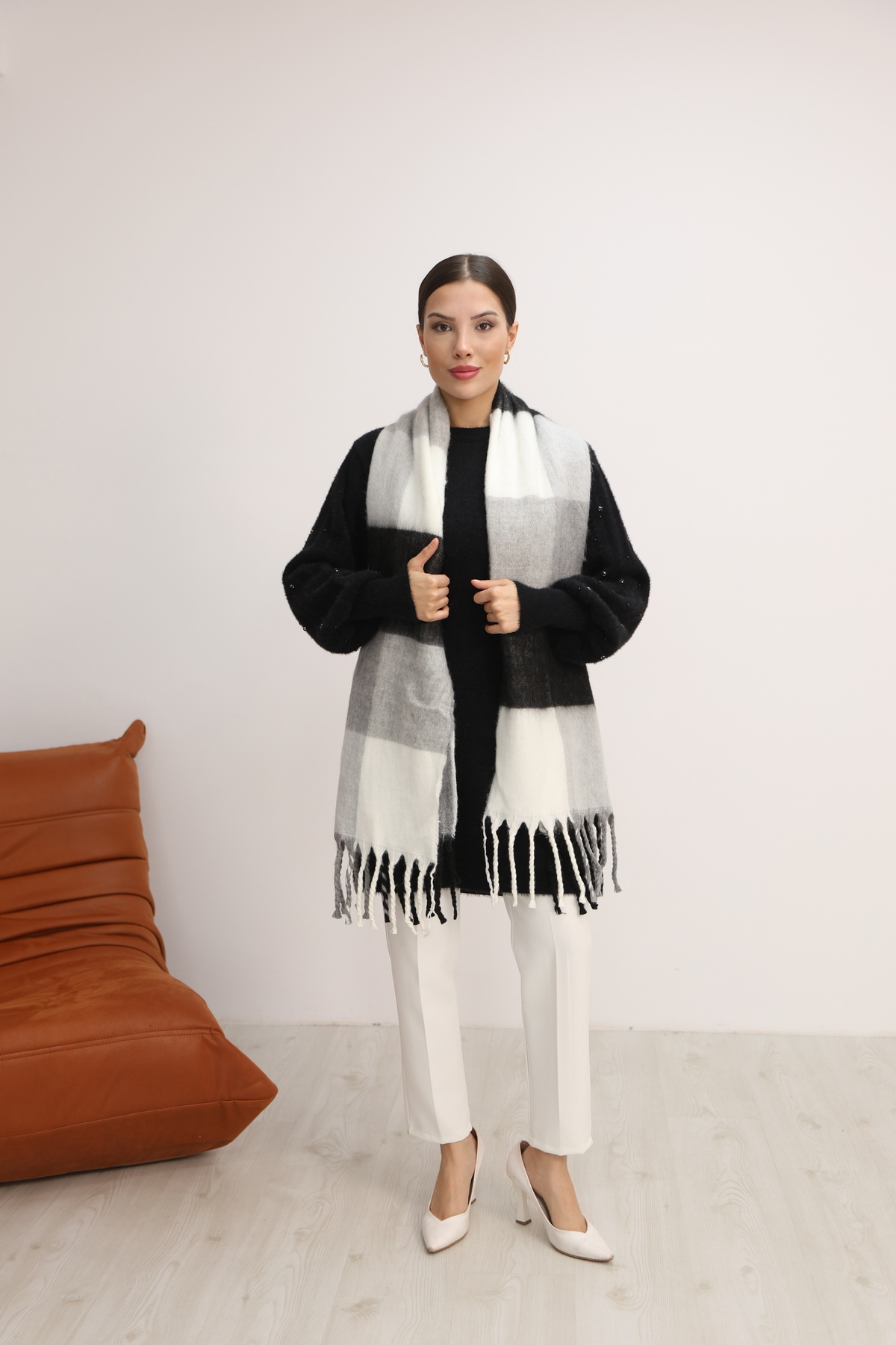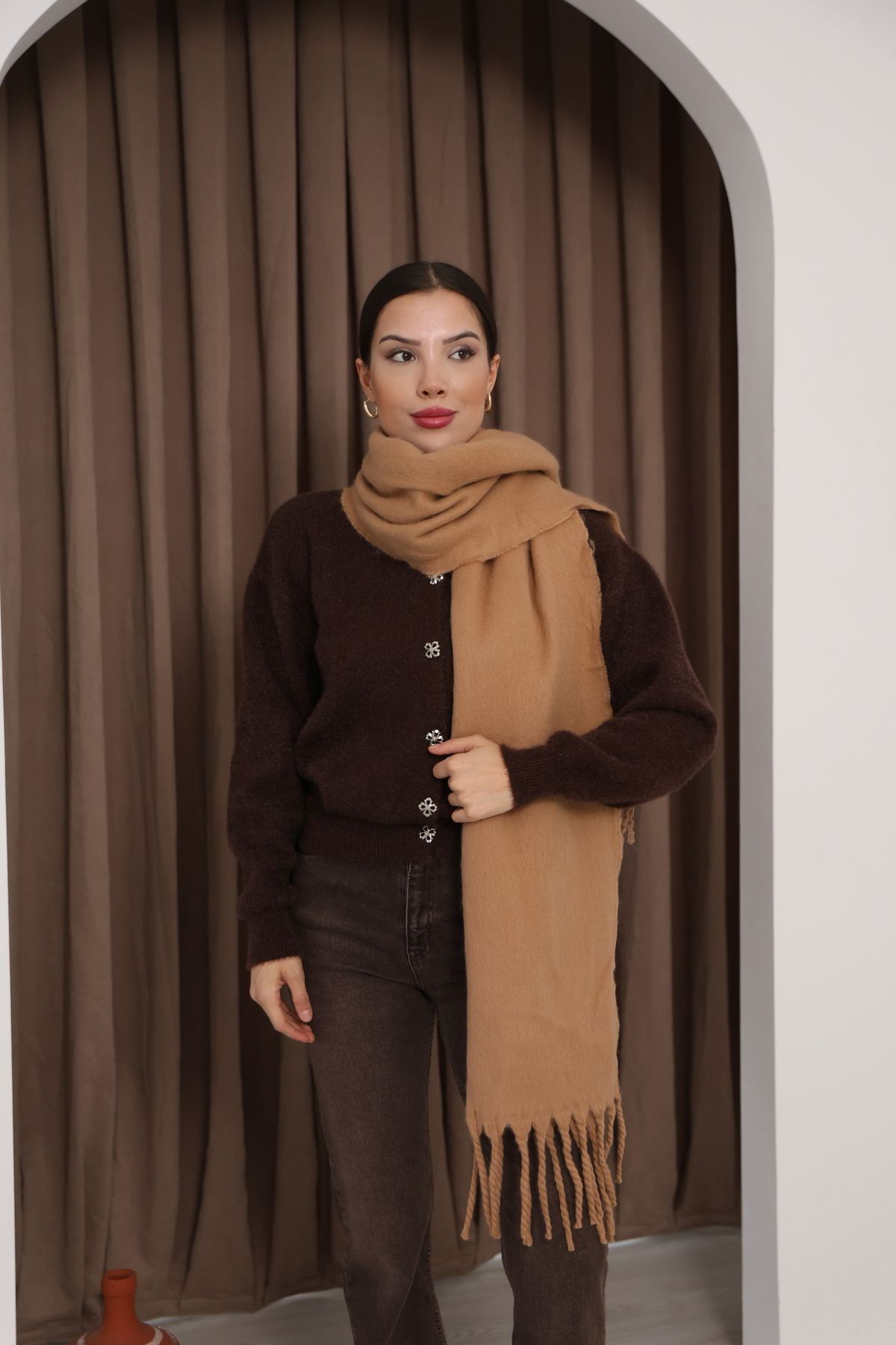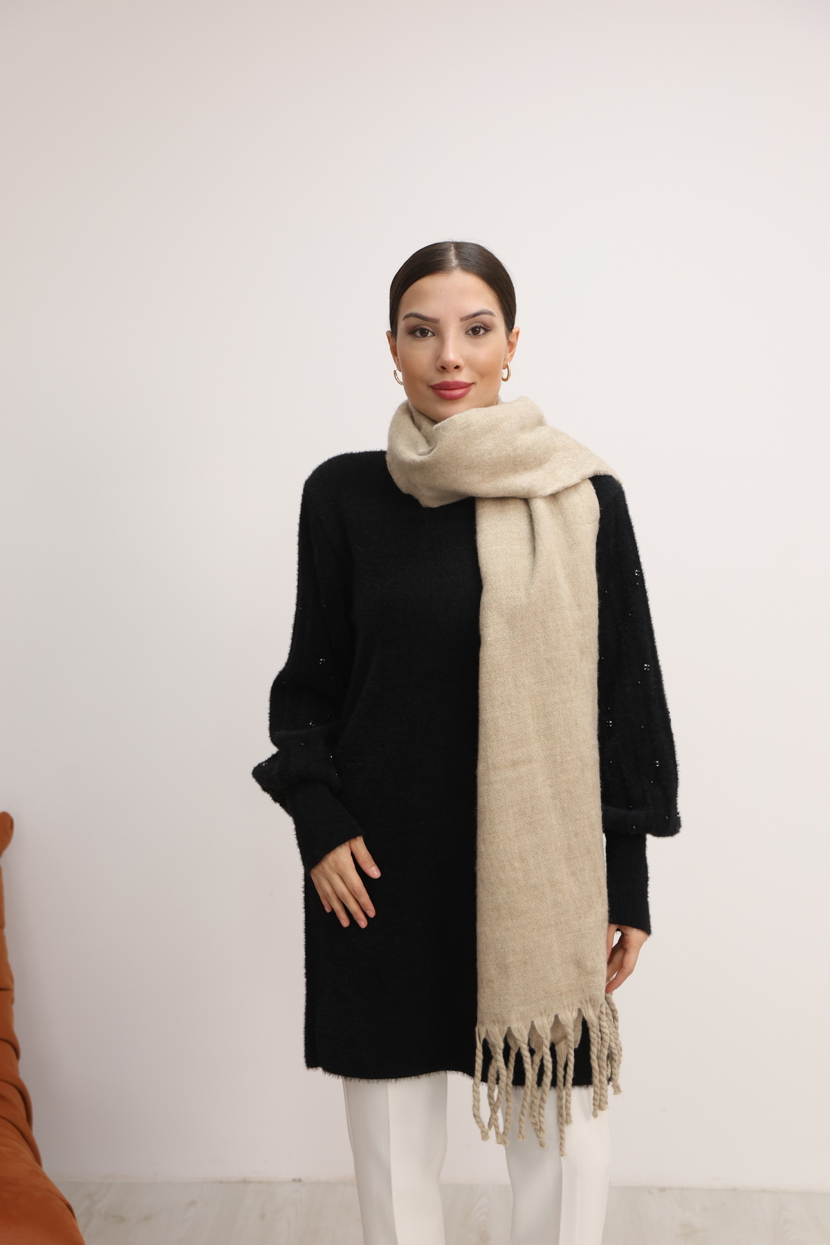 Örme kumaş Düz kesim Püsküllü bitiş Yumuşak Dokulu Kadın Atkı Şal Omuz Şalı 190.0x50.0 cm
