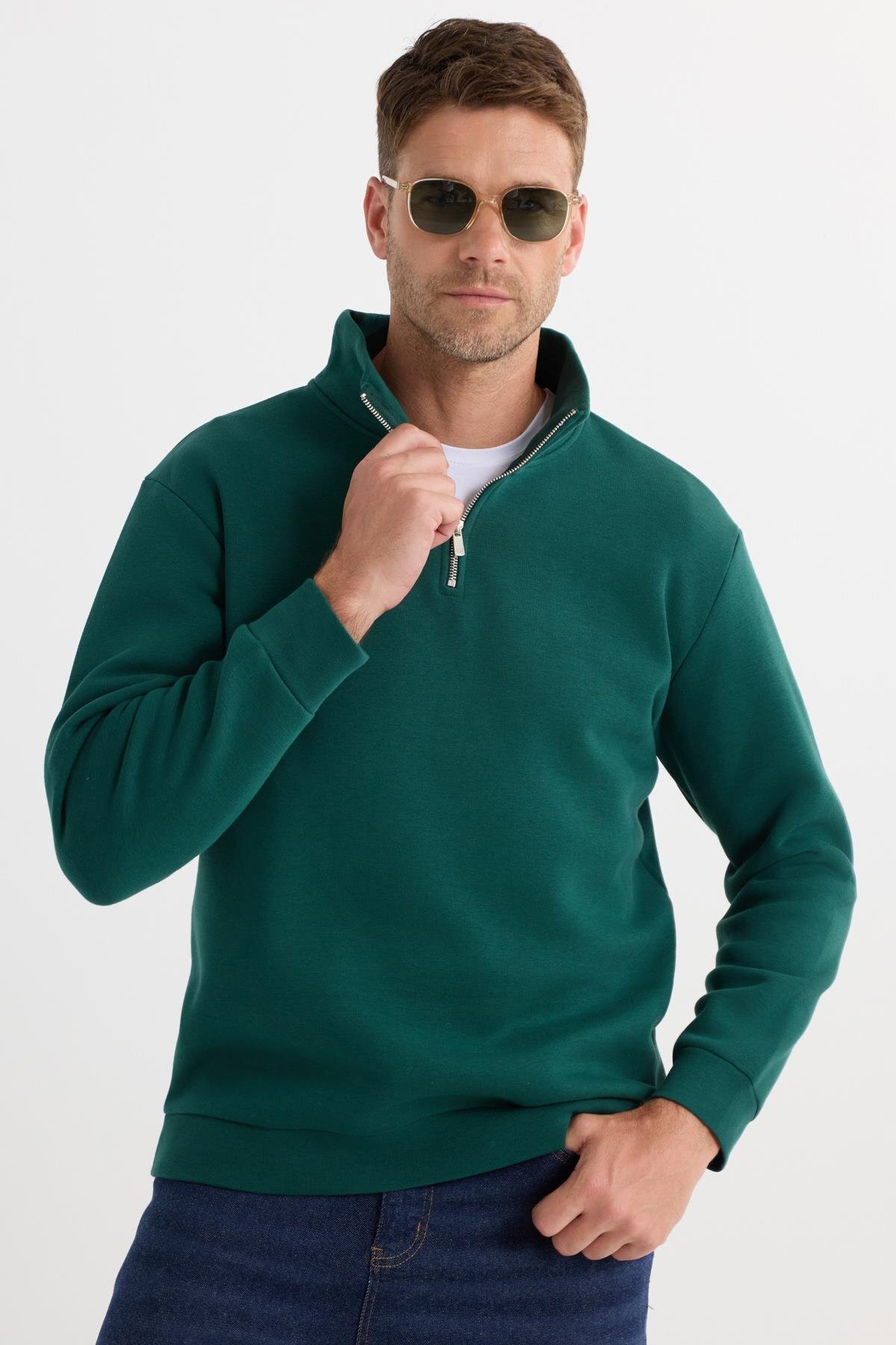 Unisex 3'lü Paket Siyah-Taş-Haki Relax Fit Pamuklu Yarım Fermuarlı Dik Yaka Sweatshirt