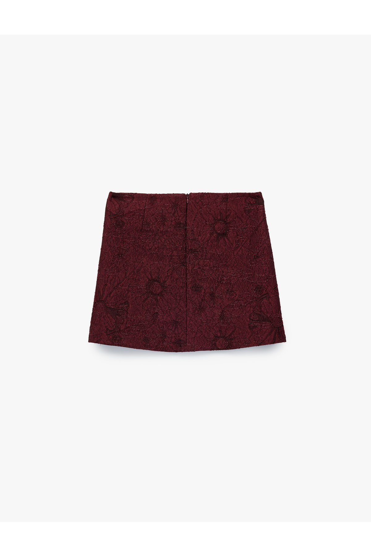 X Melis Ağazat - Metal İplik Detaylı Parıltılı A Kesim Floral Dokulu Mini Etek