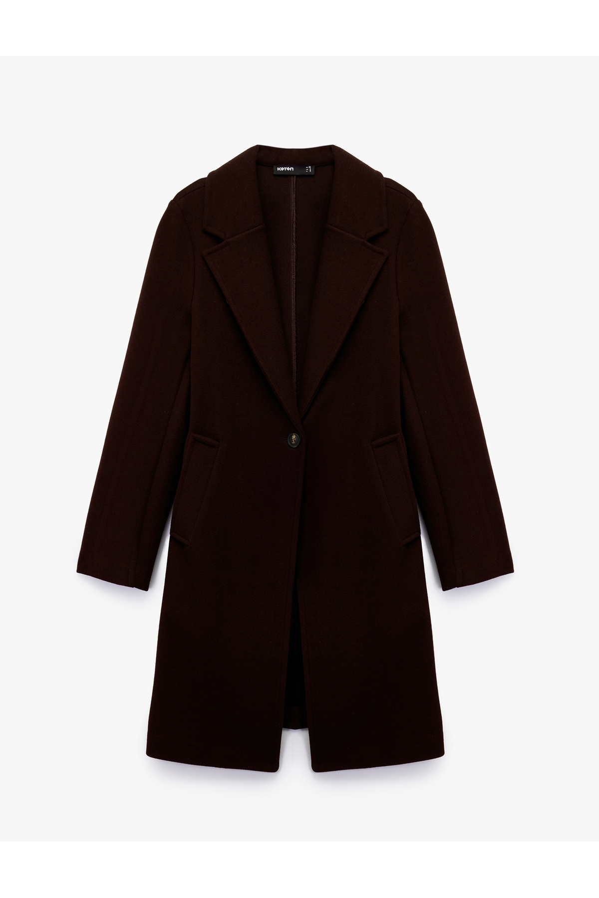 Uzun Kollu Düğmeli Cepli Kruvaze Uzun Kaşe Kaban