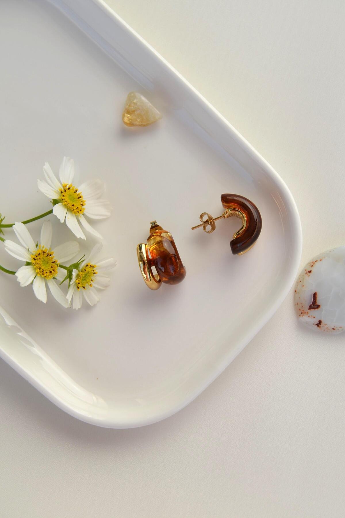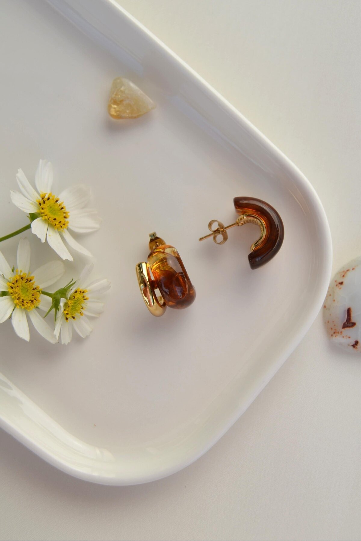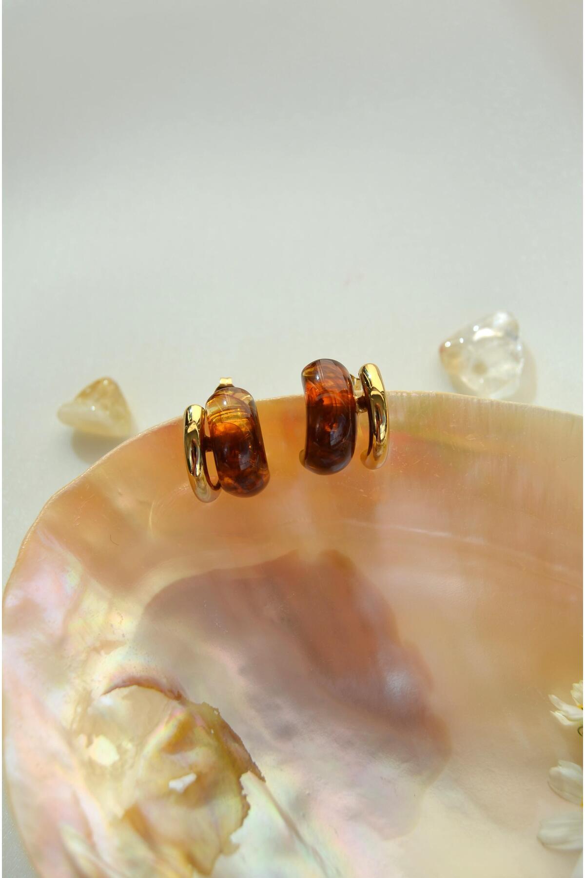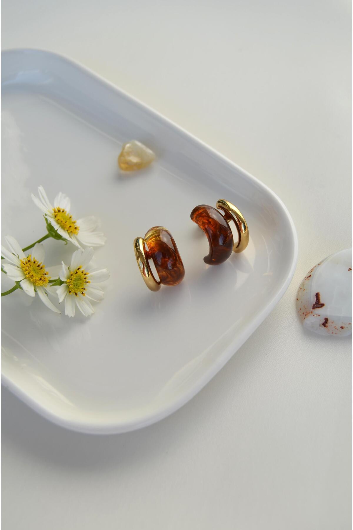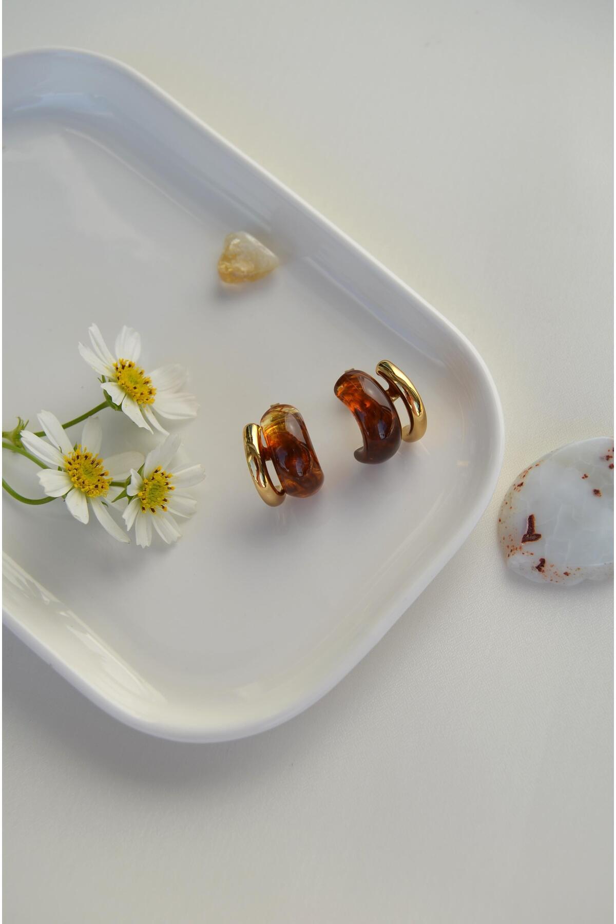 Kehribar Kahverengi Minimal Vintage Küpe – Gold Çelik